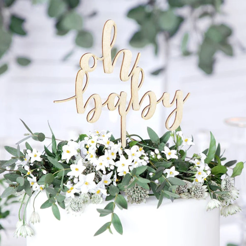 Деревянный акриловый Oh Топпер для детского торта, персонализированные украшения для детского торта для душа, пол нейтральный новый детский вечерние Топпер для торта