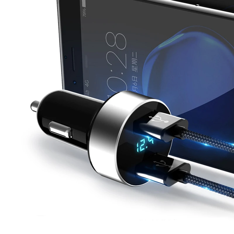 3.1A устройство для автомобиля с двумя портами USB Зарядное устройство 2 Порты ЖК-дисплей 12-24 V пробки прикуривателя