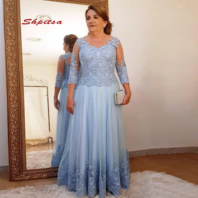 Женское вечернее платье для матери невесты, светло-голубое кружевно...