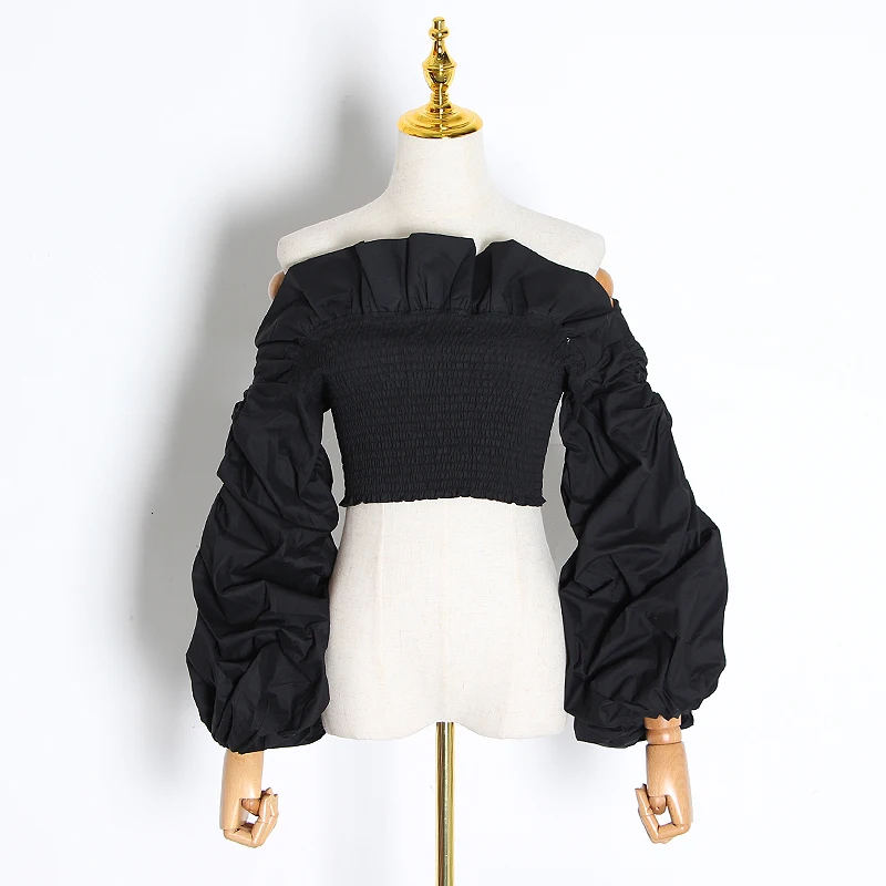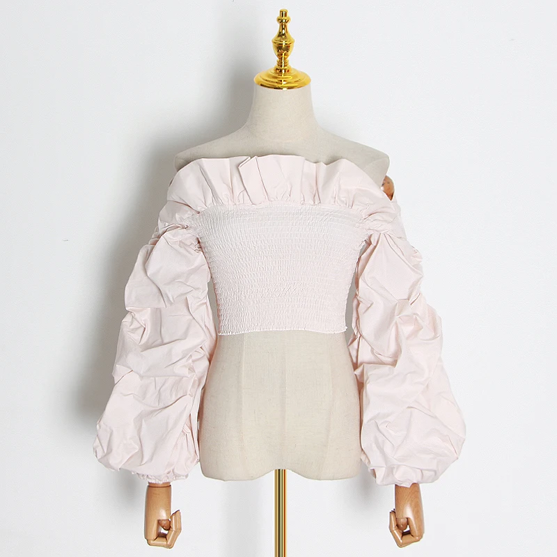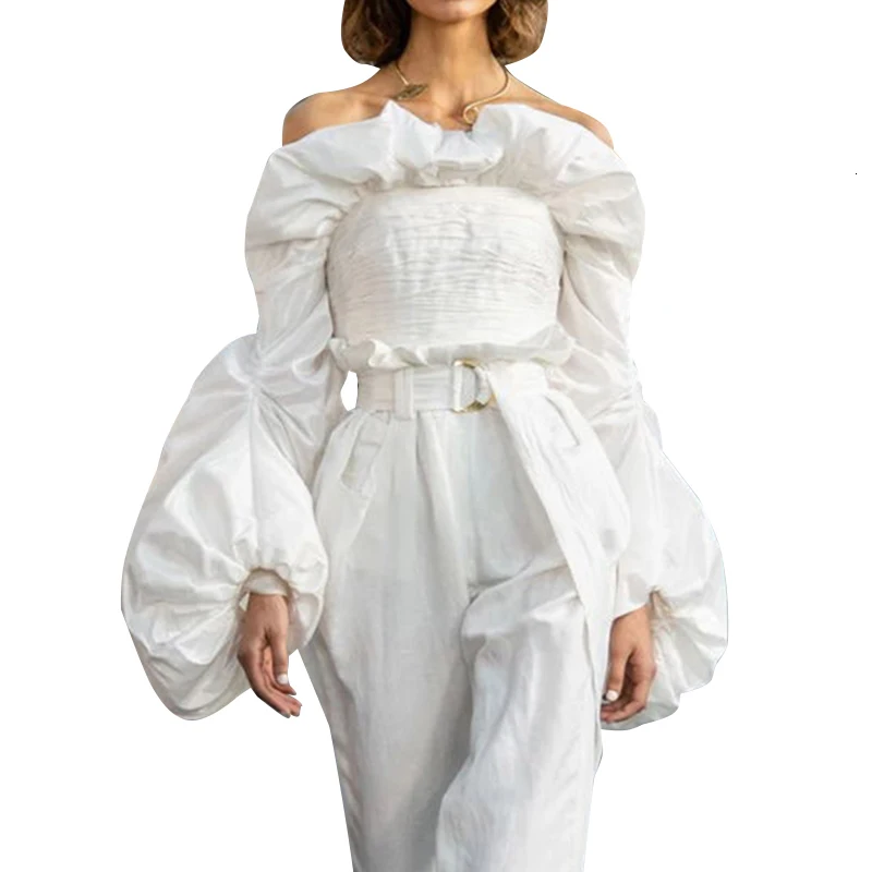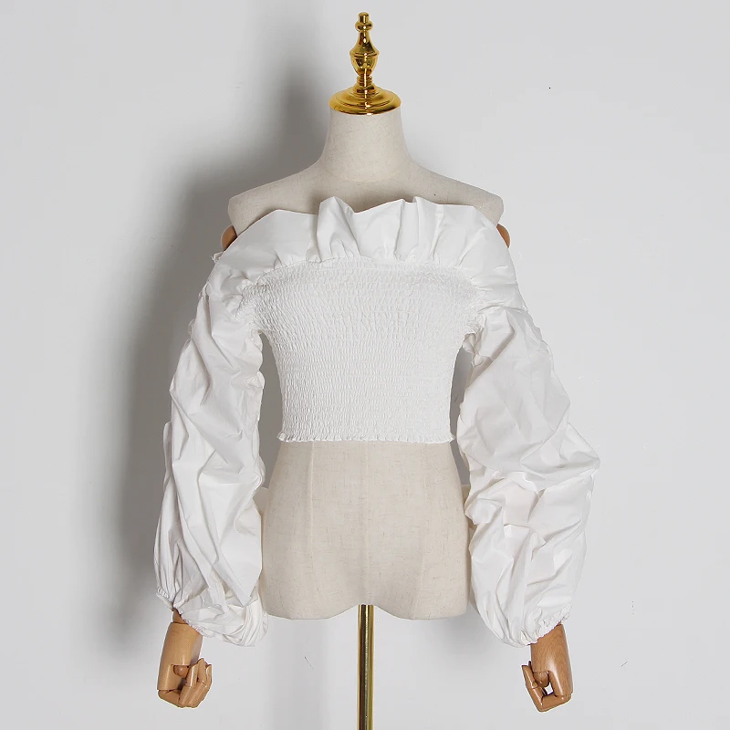 Женская блузка с рюшами TWOTWINSTYLE, белая блузка с воротником-лодочкой, длинными рукавами-фонариками, 2020