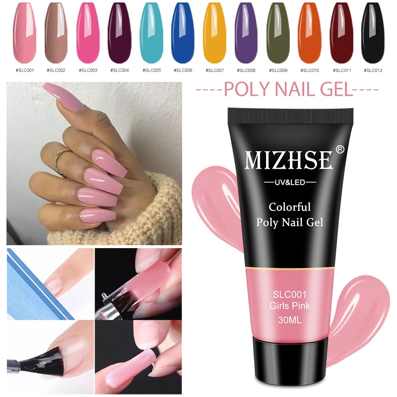 Набор для наращивания ногтей MIZHSE, полигель для ногтей, УФ-гель, 12 цветов, УФ-гель, лак для ногтей, кисть для быстрого наращивания, верхнее Базовое покрытие