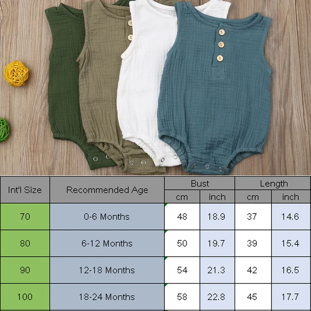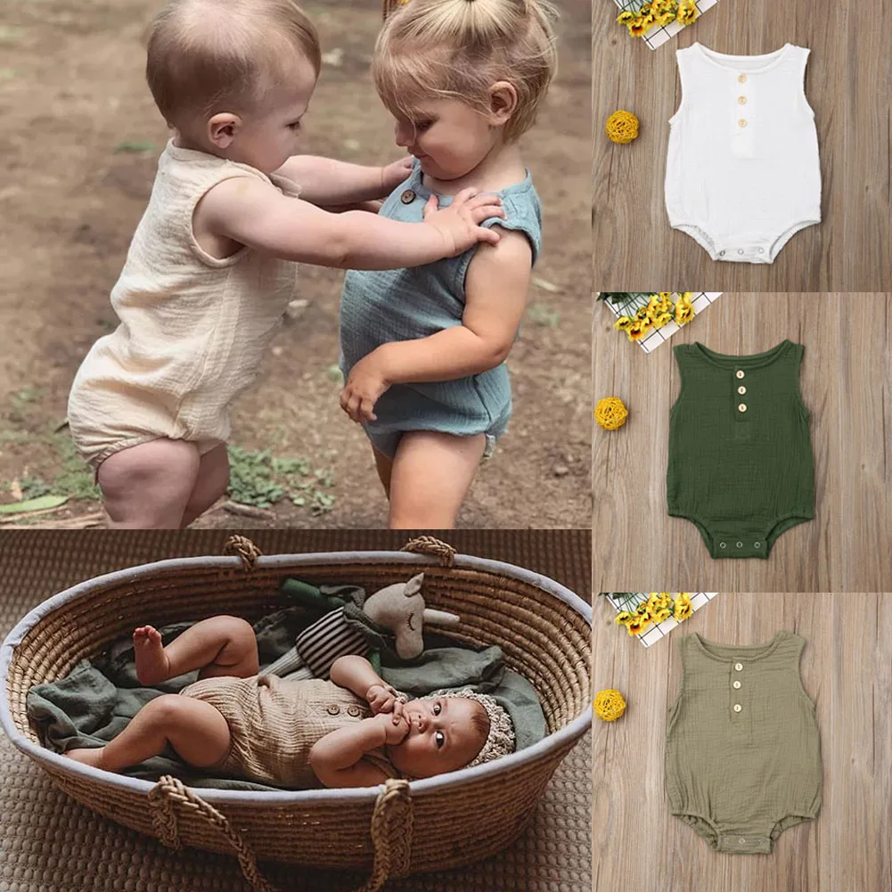 Комбинезон для новорожденных девочек и мальчиков 0-24 месяцев, хлопок, без рукавов, однотонный, От 0 до 2 лет