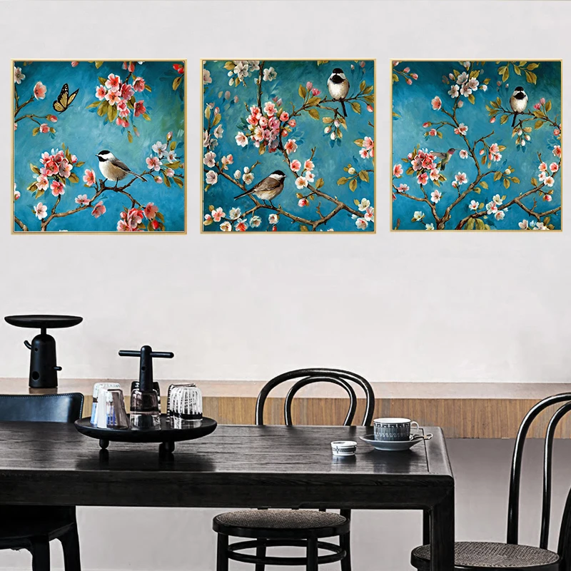 Розовое дерево с цветами, Современное украшение, Бабочка, животные, птицы, настенная живопись, синие картины, холст, живопись для гостиной, украшение для дома