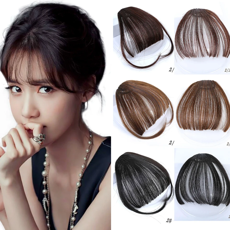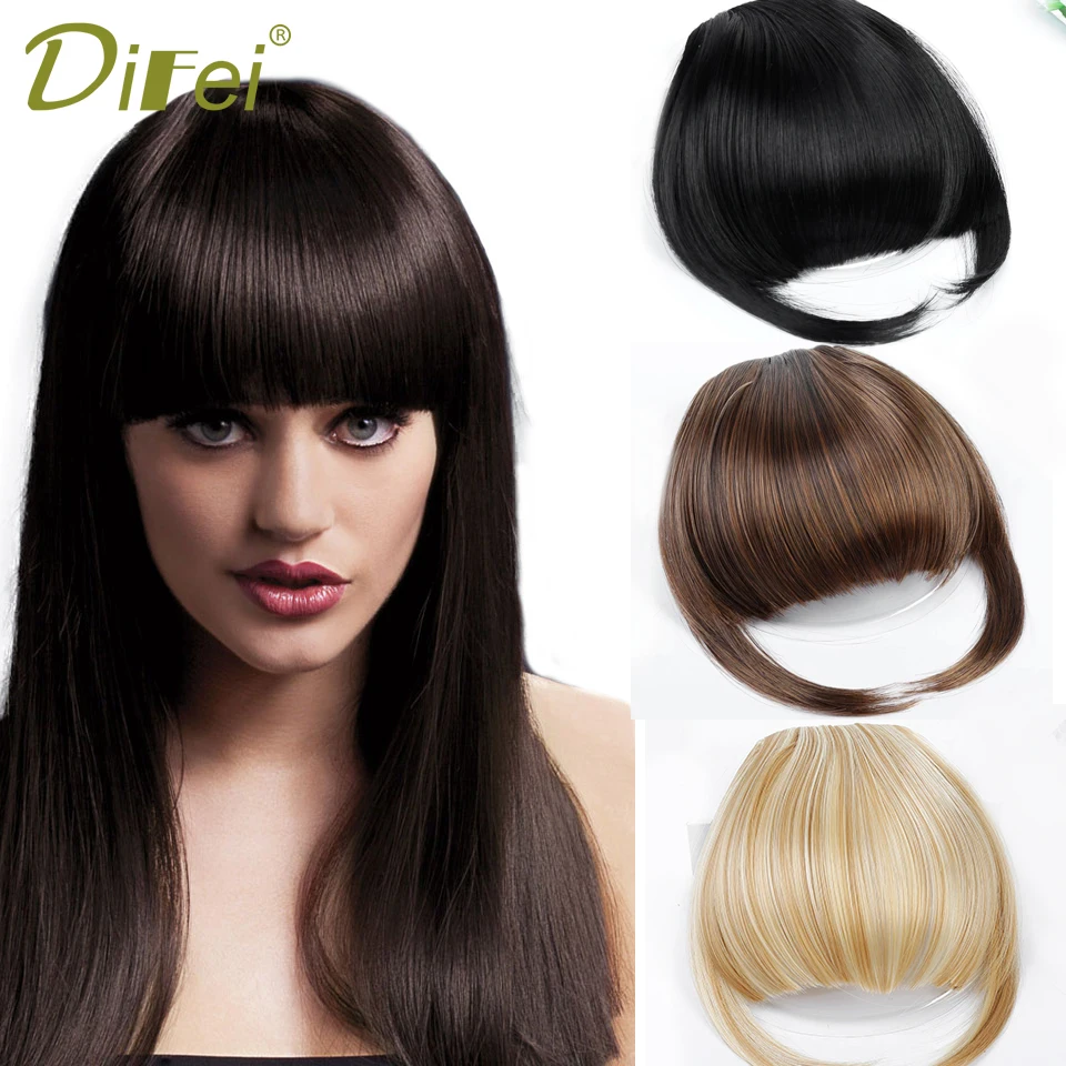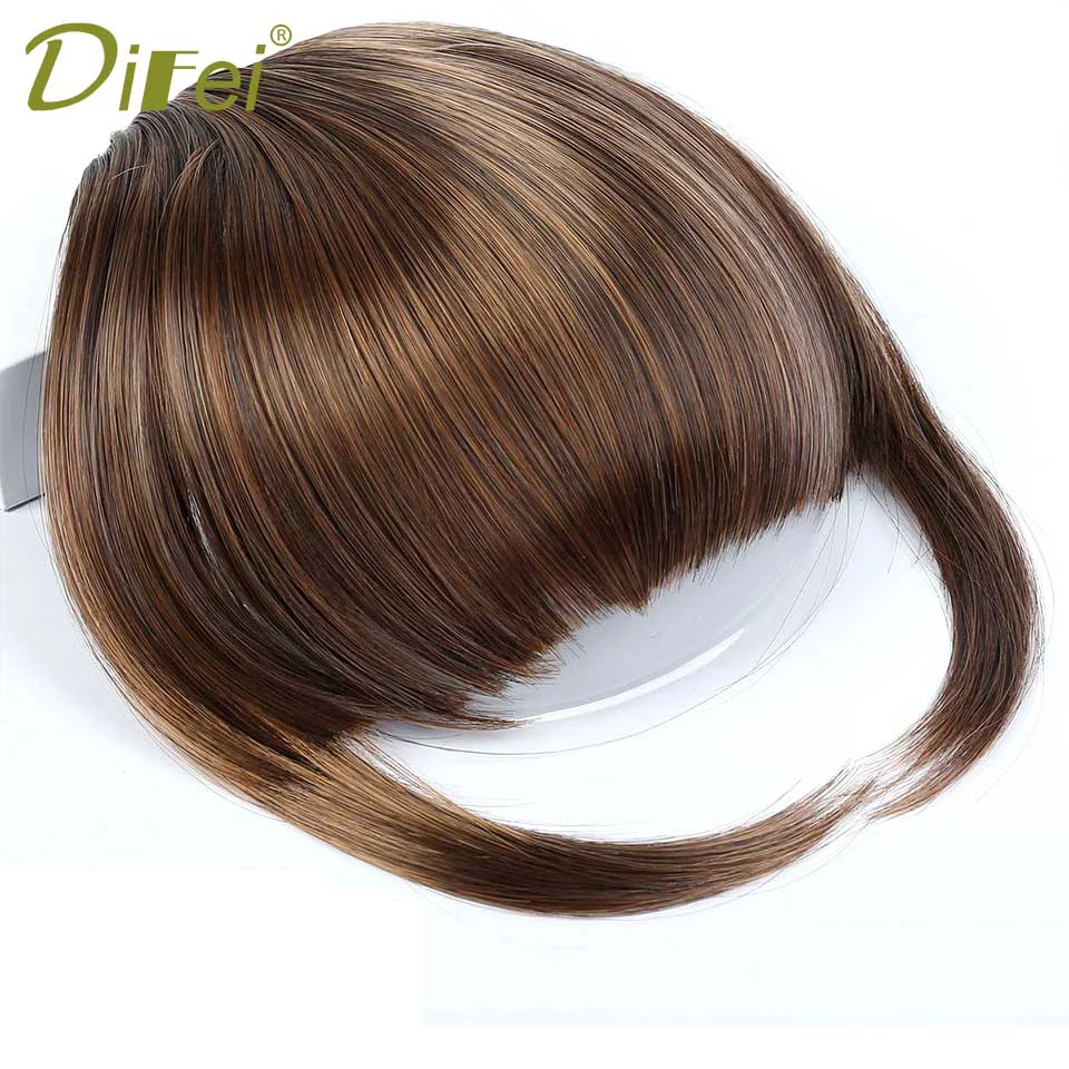 Короткие прямые черные и коричневые челки DIFEI, термостойкие синтетические передние волосы для наращивания, Натуральные Искусственные волосы, воздушные челки, Женская шиньон