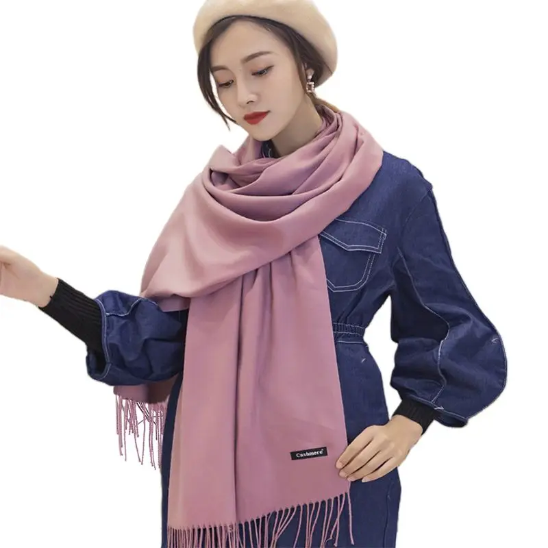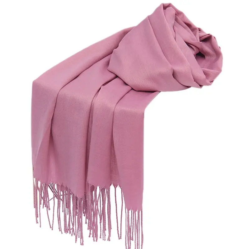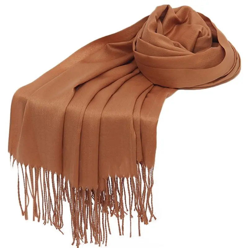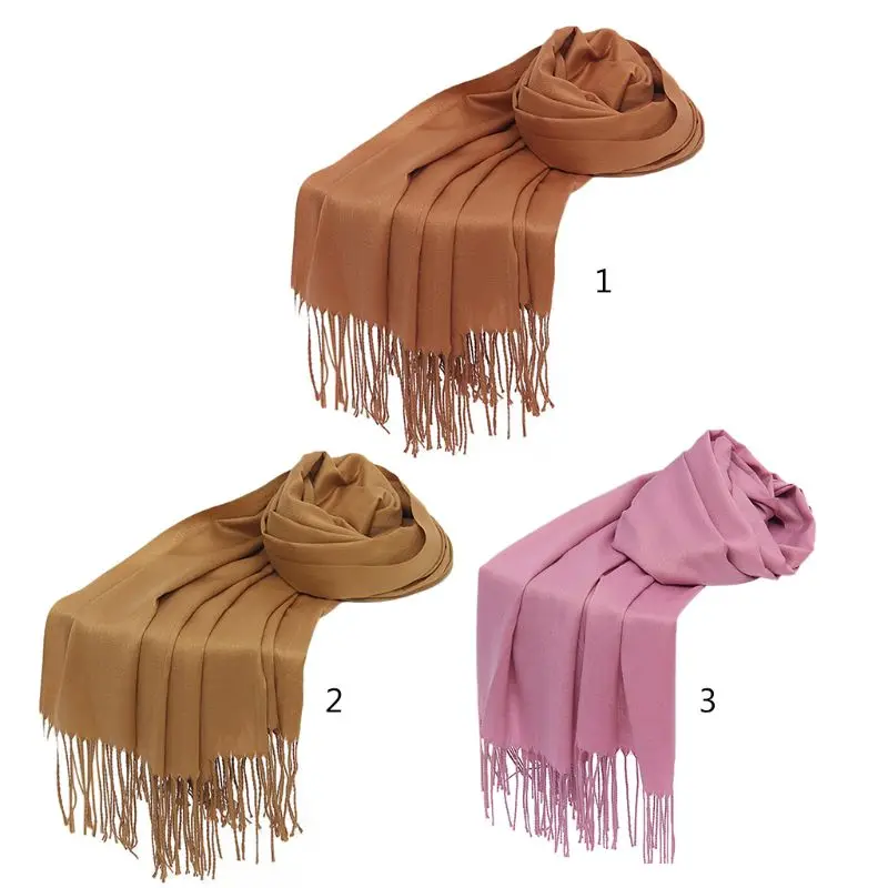 Женский шарф, однотонный осенне-зимний хиджаб из пашмины, длинная шаль, бандана с кисточками