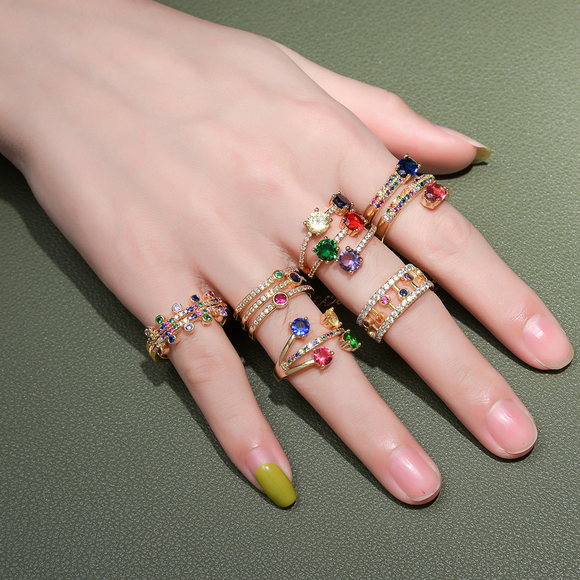 Кольца обручальные женские, обручальные украшения из меди с короной под золото с фианитом и радужной геометрией, Подарочные изящные стразы