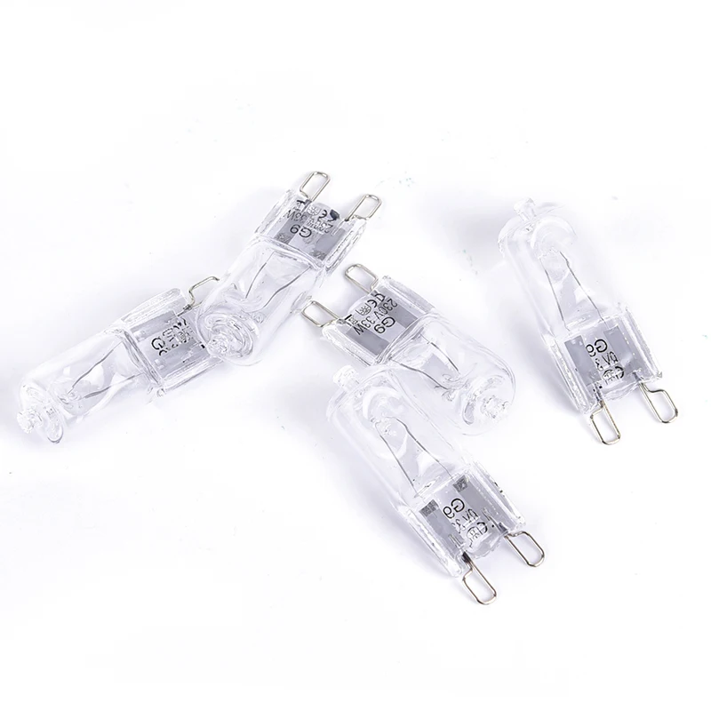 Характеристики1. Он может быть напрямую подключены к 220v-240v источника питания без использования трансформатора2. Несколько конструкций и тестов безопасности для обеспечения безопасности и предотвращения разрыва3. Анти-УФ покрытие, эффективно блокирует УФТип: галогенная лампа G9Цвет: прозрачныйРазмеры: 4,2 см x 1,4 смВес: 26 гМатериал: стеклоНапряжение: 220 ВМощность: 18 Вт/28 Вт/33 Вт/35 ВтИспользование: матовое освещение/Вольфрамовая ЛампаКол-во: 5 шт.Посылка включает в себя: 5 галогенных ламп G9