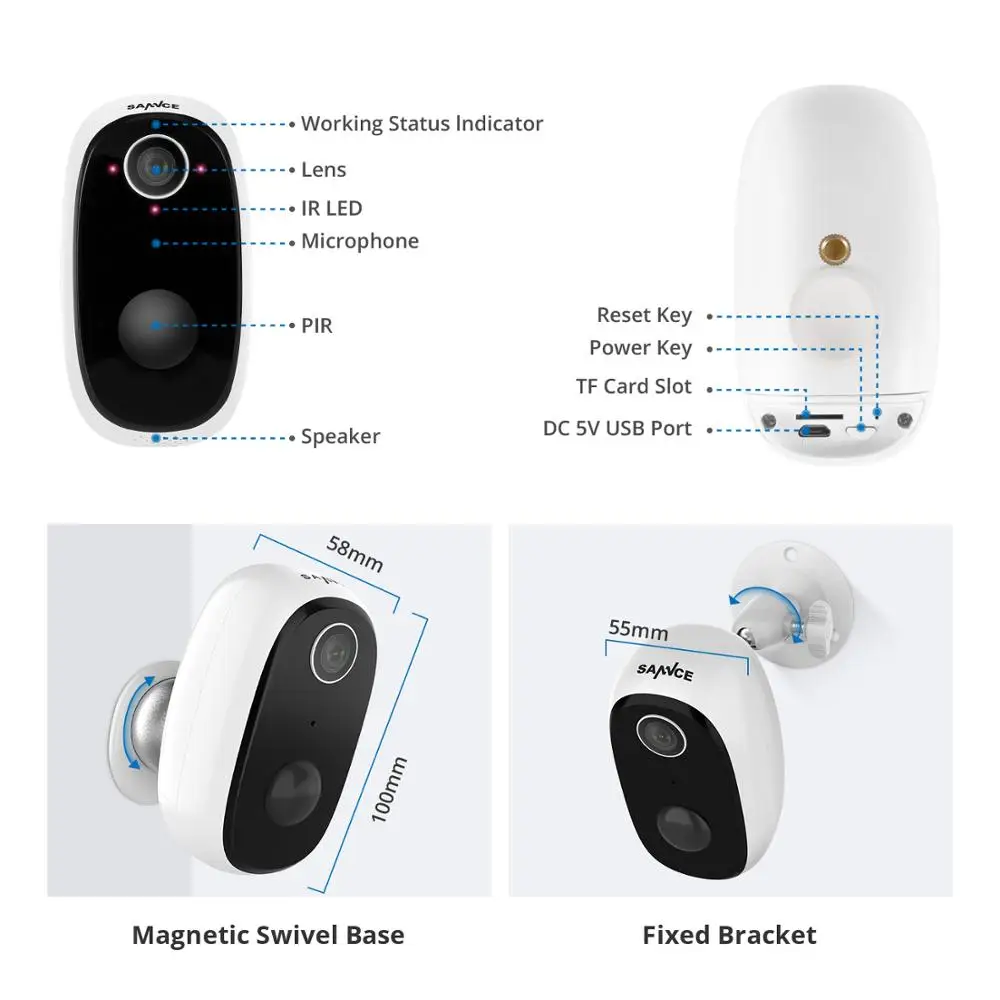 IP-камера SANNCE FHD 1080P Беспроводная с аккумулятором мА