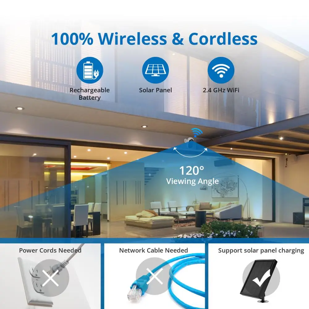 SANNCE FHD 1080P ip-камера, беспроводной мини-монитор для малышей, PIR 6000mA, перезаряжаемая батарея, камера, Двусторонняя аудио поддержка, солнечная панель