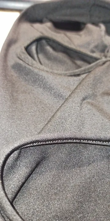 Ткань на ощупь немного скользкая, как синтетика, немного тянется. Голову облегает хорошо, качеством удовлетворён.