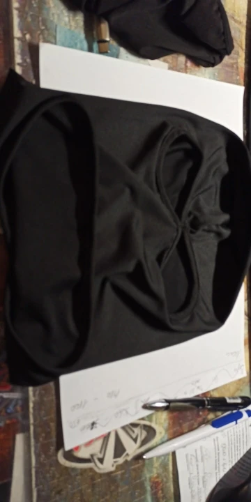 Ткань напоминает, ту что используют в чулках. Ткань плотная. Швы прошиты добротно. В качестве реквизита сойдёт.
