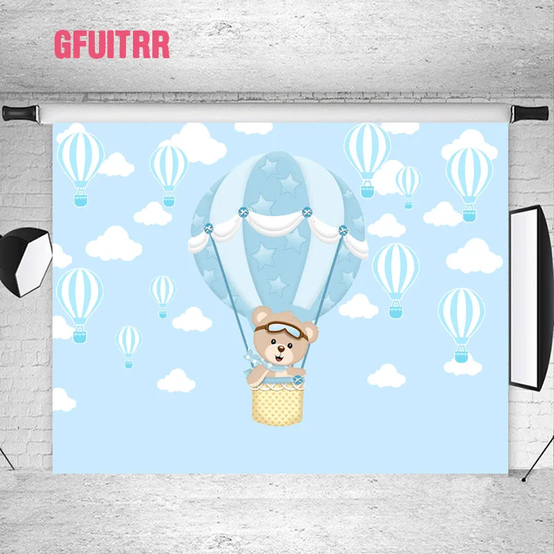 GFUITRR воздушные шары медведь фотография Фон Дети День рождения Baby Shower виниловая фотокамера фон синий фотостенд реквизит