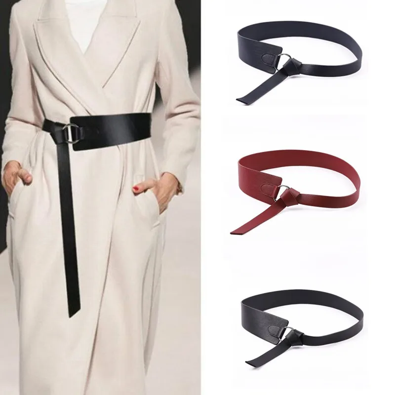Женский широкий корсет с узлом-кольцом, женский кожаный пояс тонкий...