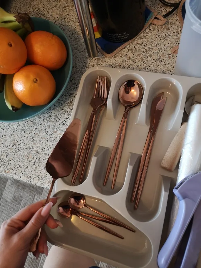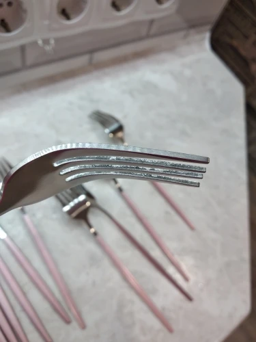 Потрясающие приборы! Заказывала в период ноябрьских распродаж, пришли аккурат под новый год и стали отличным украшением стола. Очень удобные и изящные. Ножи острые и хорошо режут мясо. Цвет розовый, как и хотела, под общее оформление гостиной.
