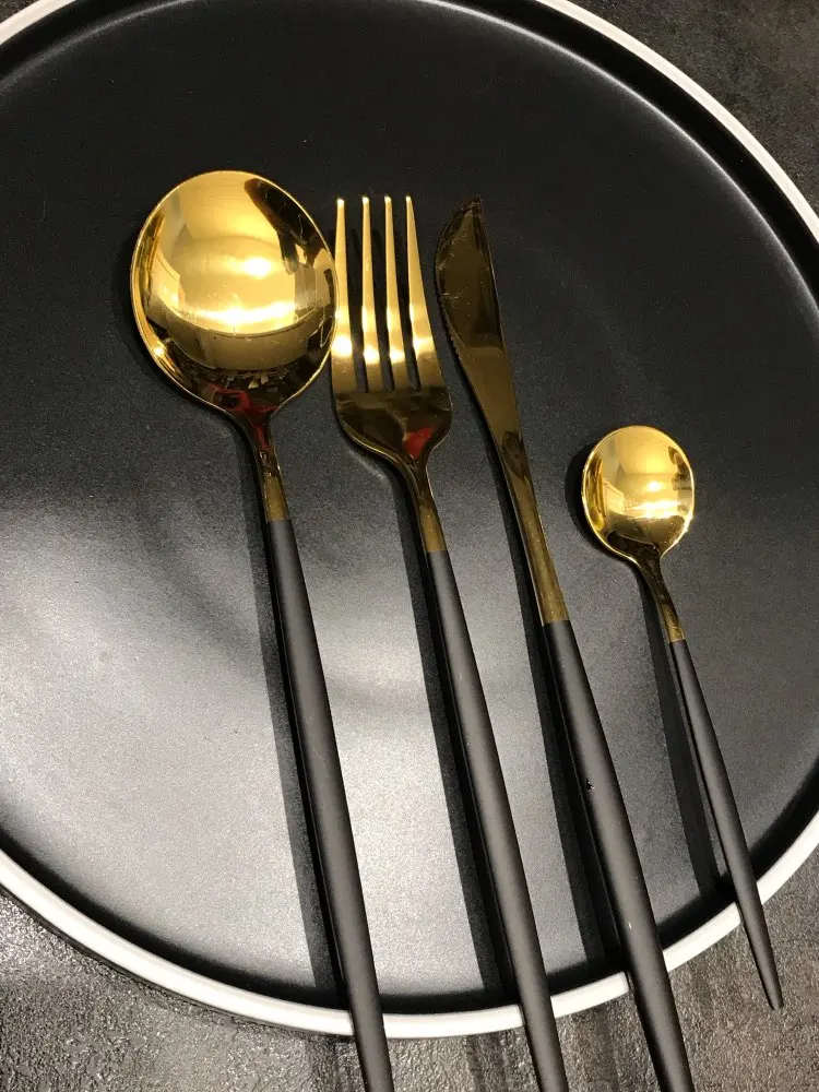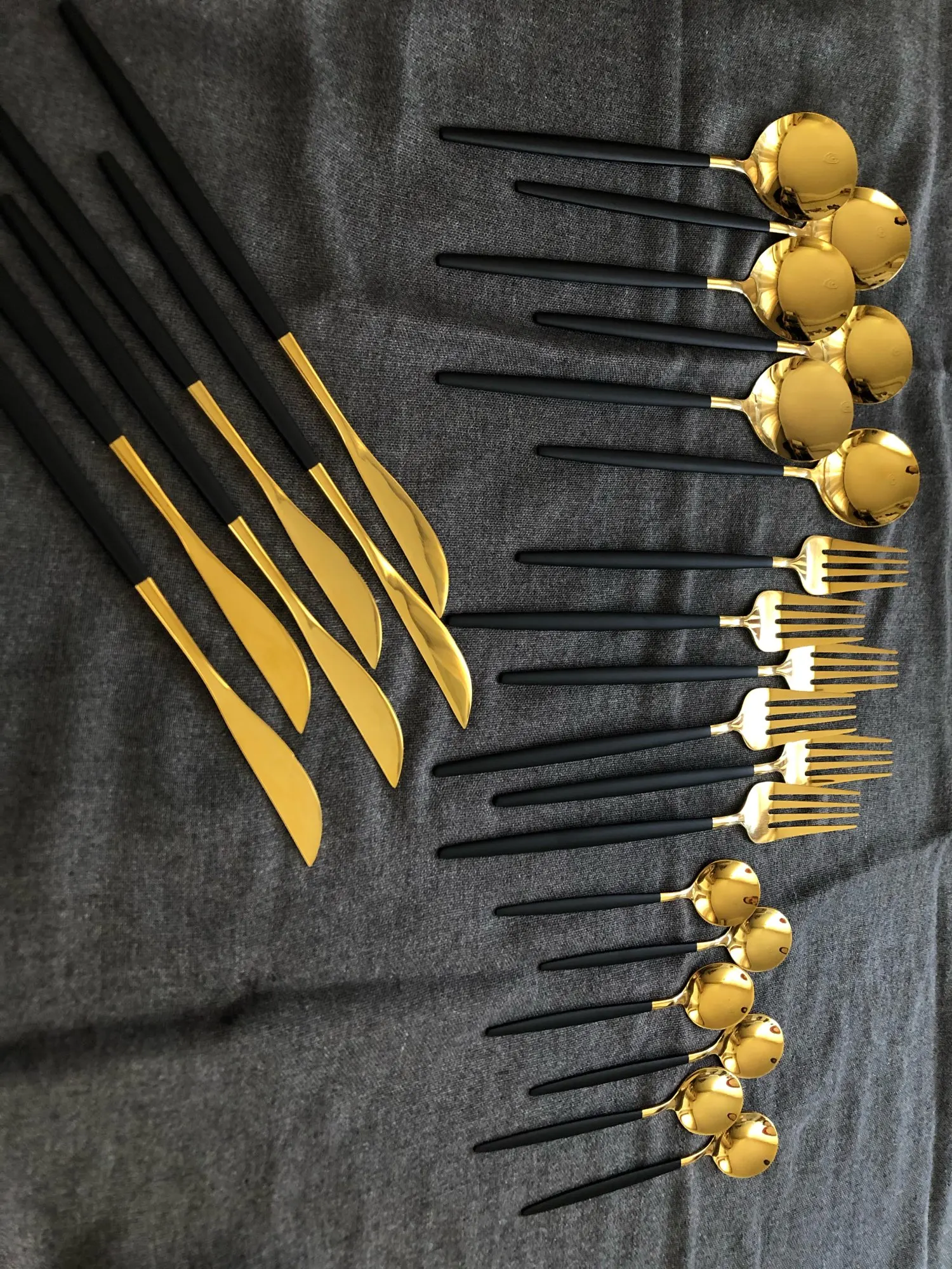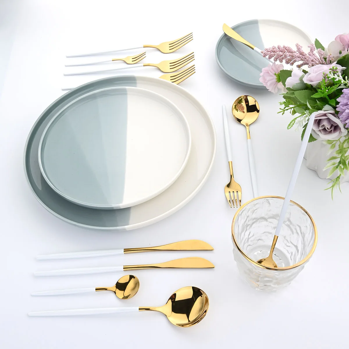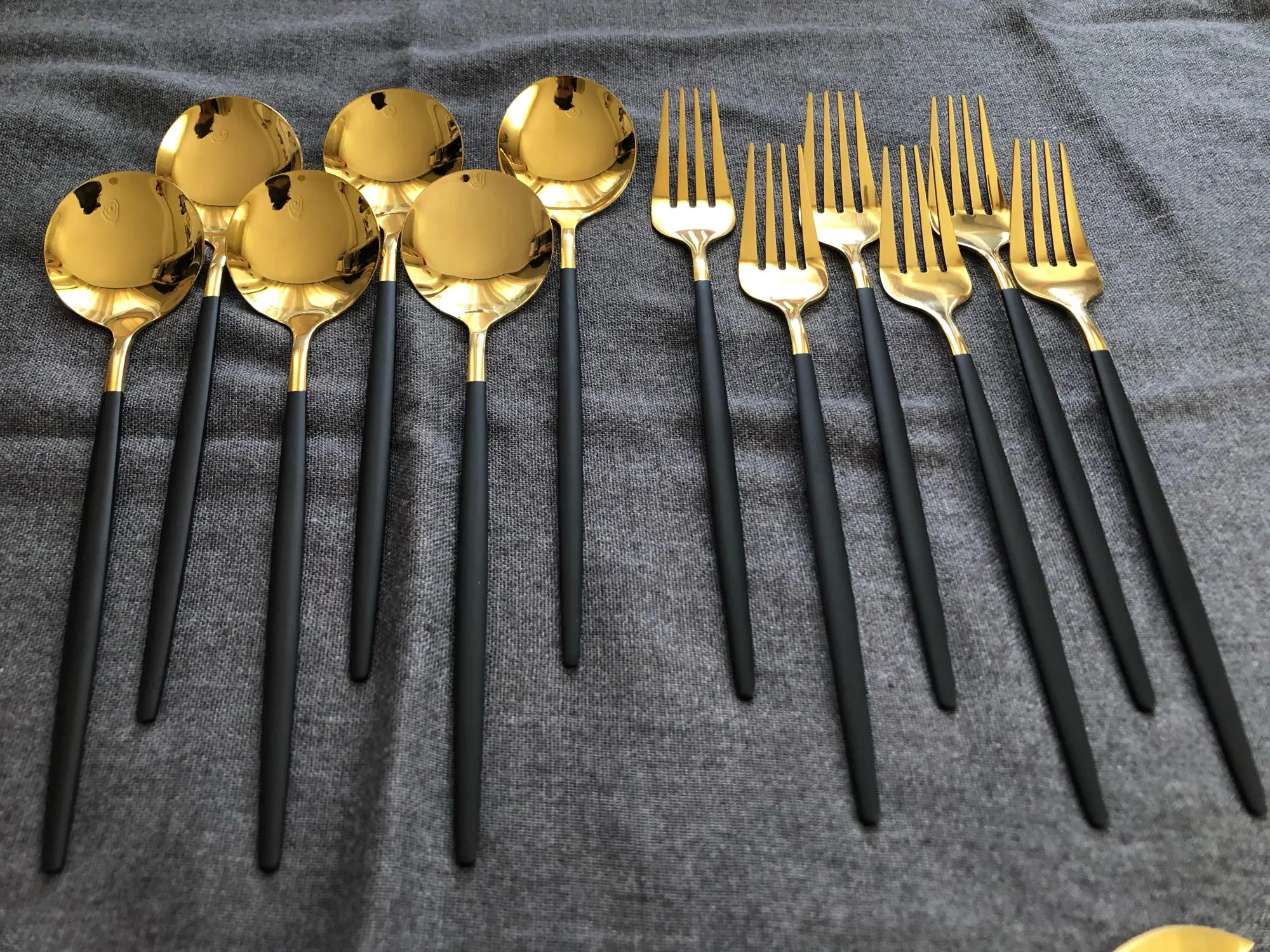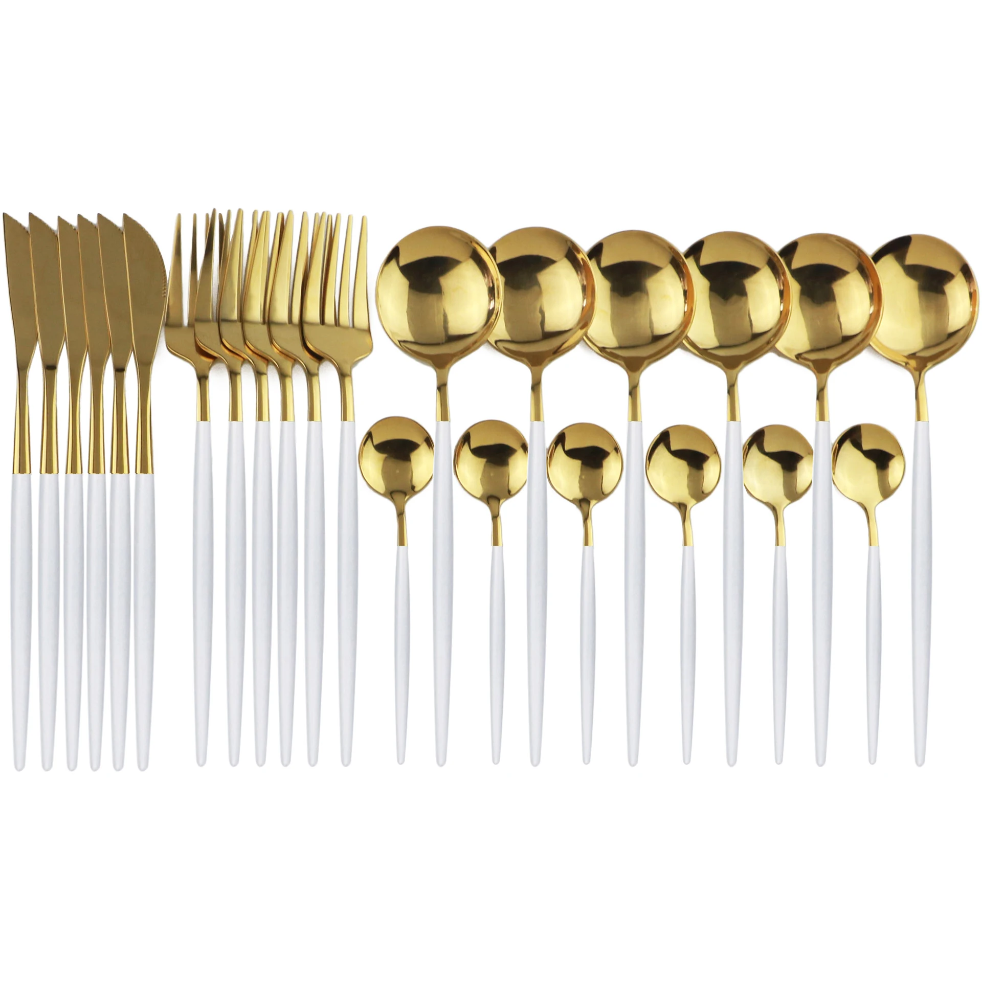 JANKNG, 24 шт., нержавеющая сталь столовый набор для кухни, столовые приборы, столовые приборы, нож из белого золота, вилка, ложка, посуда наборов