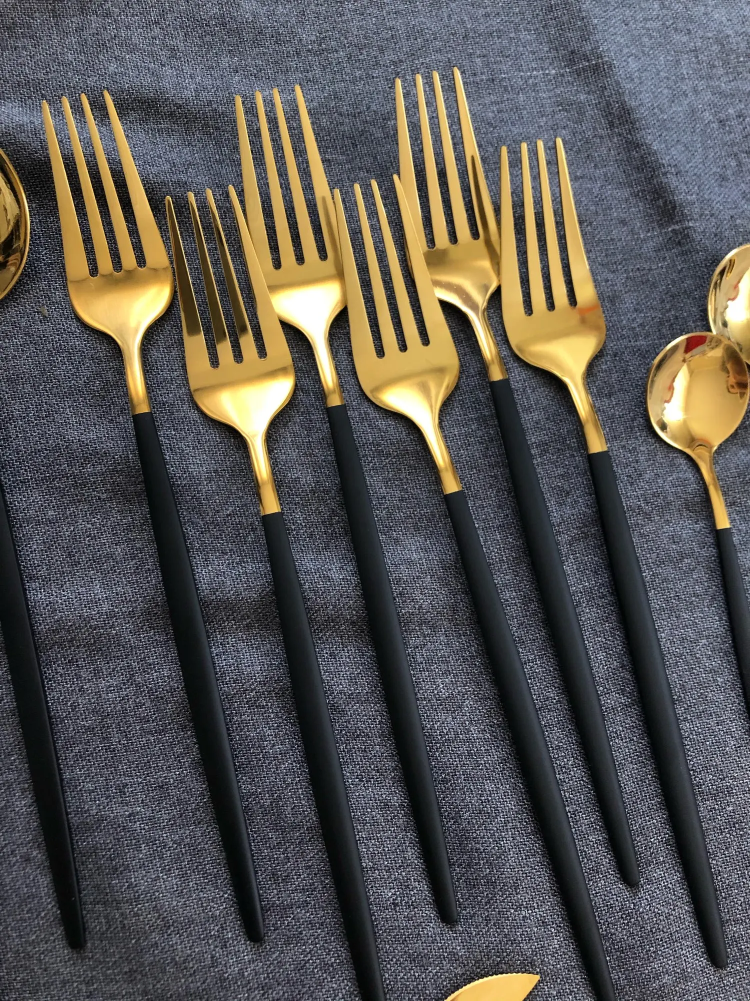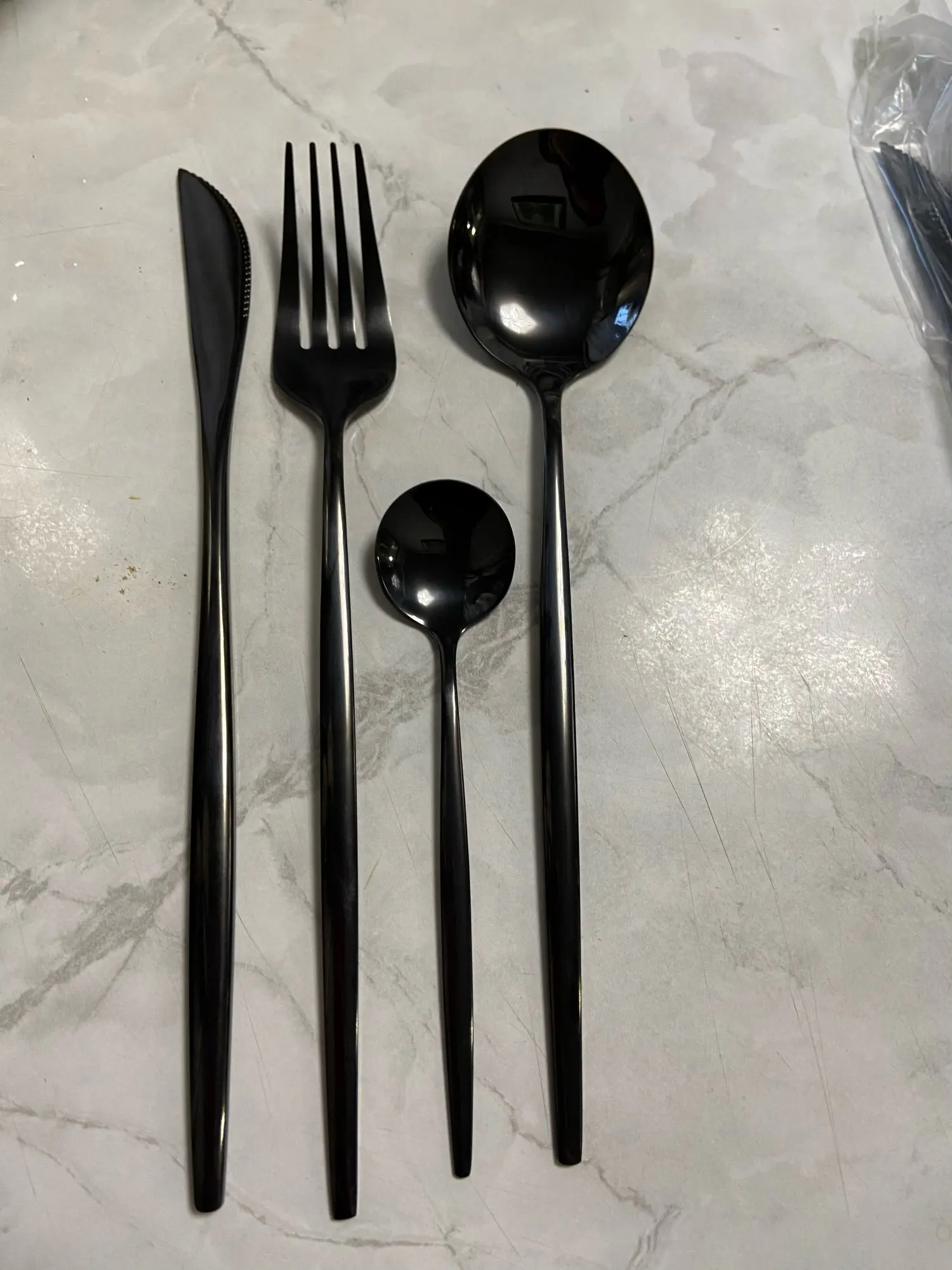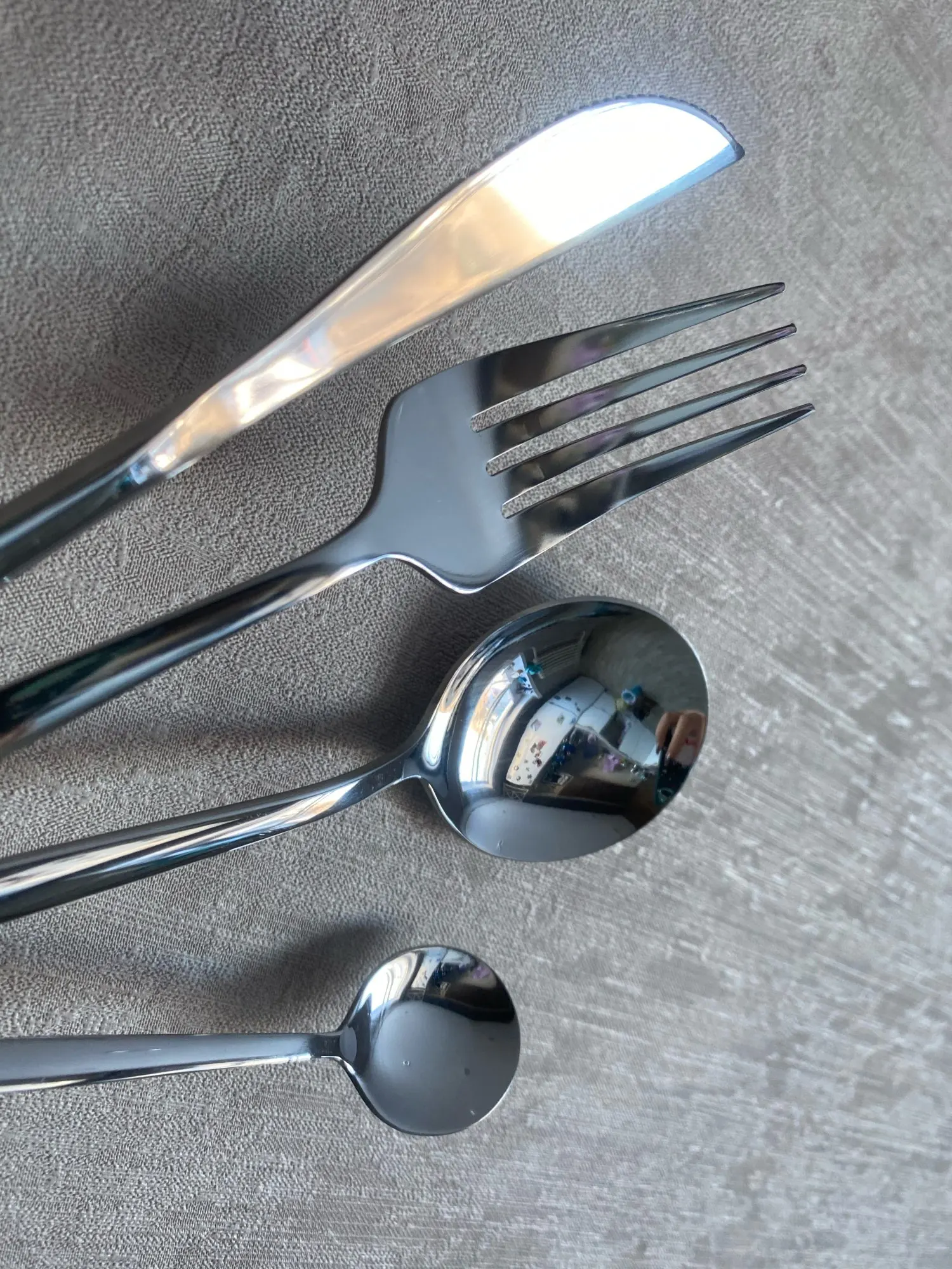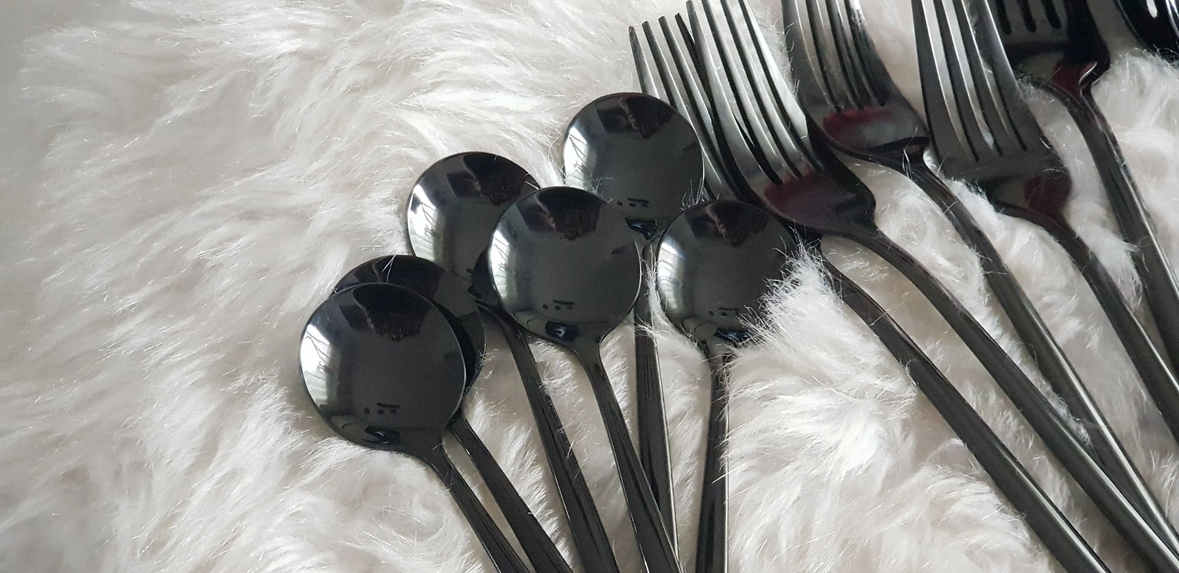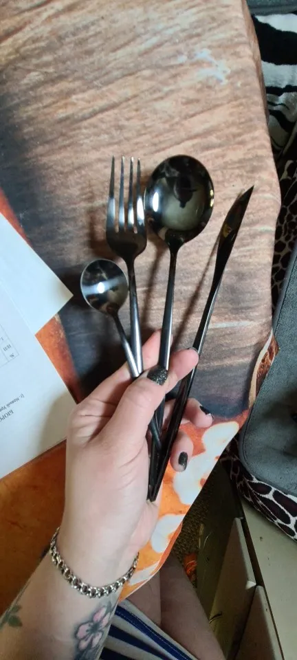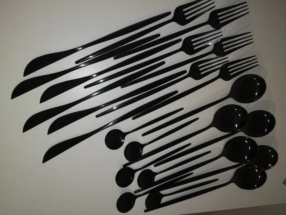 Столовые приборы очень удобные в использовании, тяжёлые металлические, цвет - чёрный хром, в реальности лучше, чем на фото. Все пришло надёжно упакованным, приборы без дефектов. Эргономически и тактильно приятны в использовании