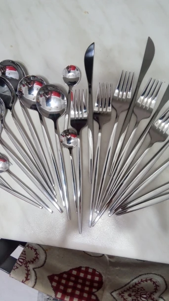 Они шикарные!!! Загорелась идеей поменять столовые приборы и нашла эти по приемлемой цене. Упаковано все хорошо, пришло относительно не долго. Приборы очень понравились. Ложки непривычные конечно, но есть удобно и в руке лежат приятно. В посудомойке тоже уже не раз помыла, все ок