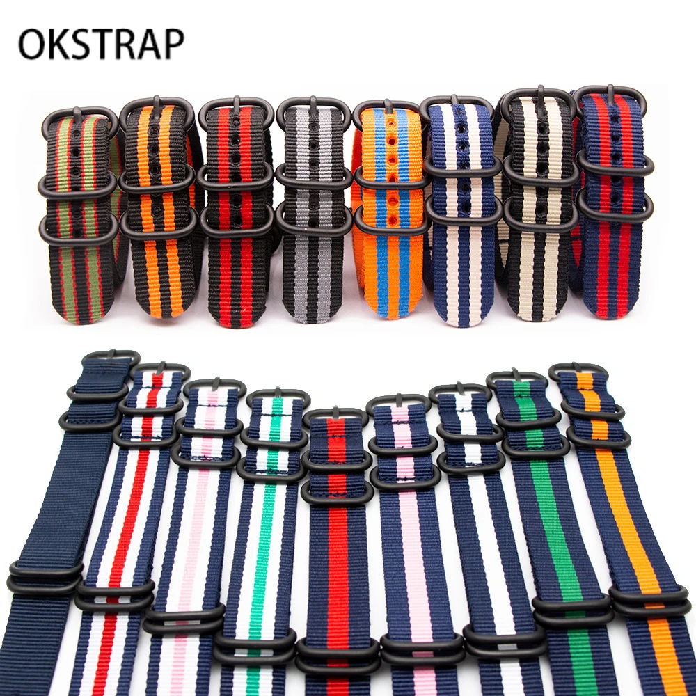 Ремешок нейлоновый для наручных часов, армейский спортивный браслет ZULU с черной застёжкой-кольцом, 18 мм 20 мм 22 мм 24 мм, аксессуары для часов