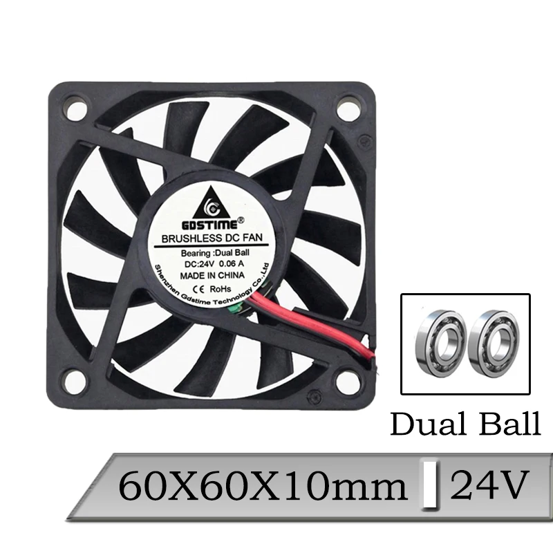 Вентилятор охлаждения процессора Gdstime, 2 контакта, 24 в пост. Тока, 60 мм, 60x60x10 мм, 6 см
