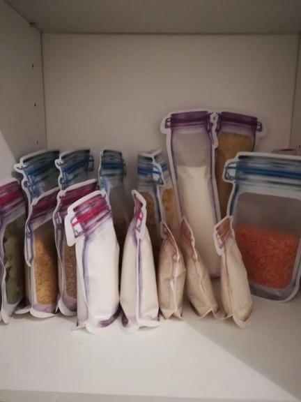 отличные пакеты. интересно смотрятся, хорошо закрываются, очень плотные. единсивенное, что в большой пакет не совсем удобно лезть пальцами, есть что-то мелкое и в нижней половине - мнется с заломами пакет и так и останется, не очень красиво. разве что переворачивать и высыпать. маленькие пакеты супер, вообще никаких замечаний