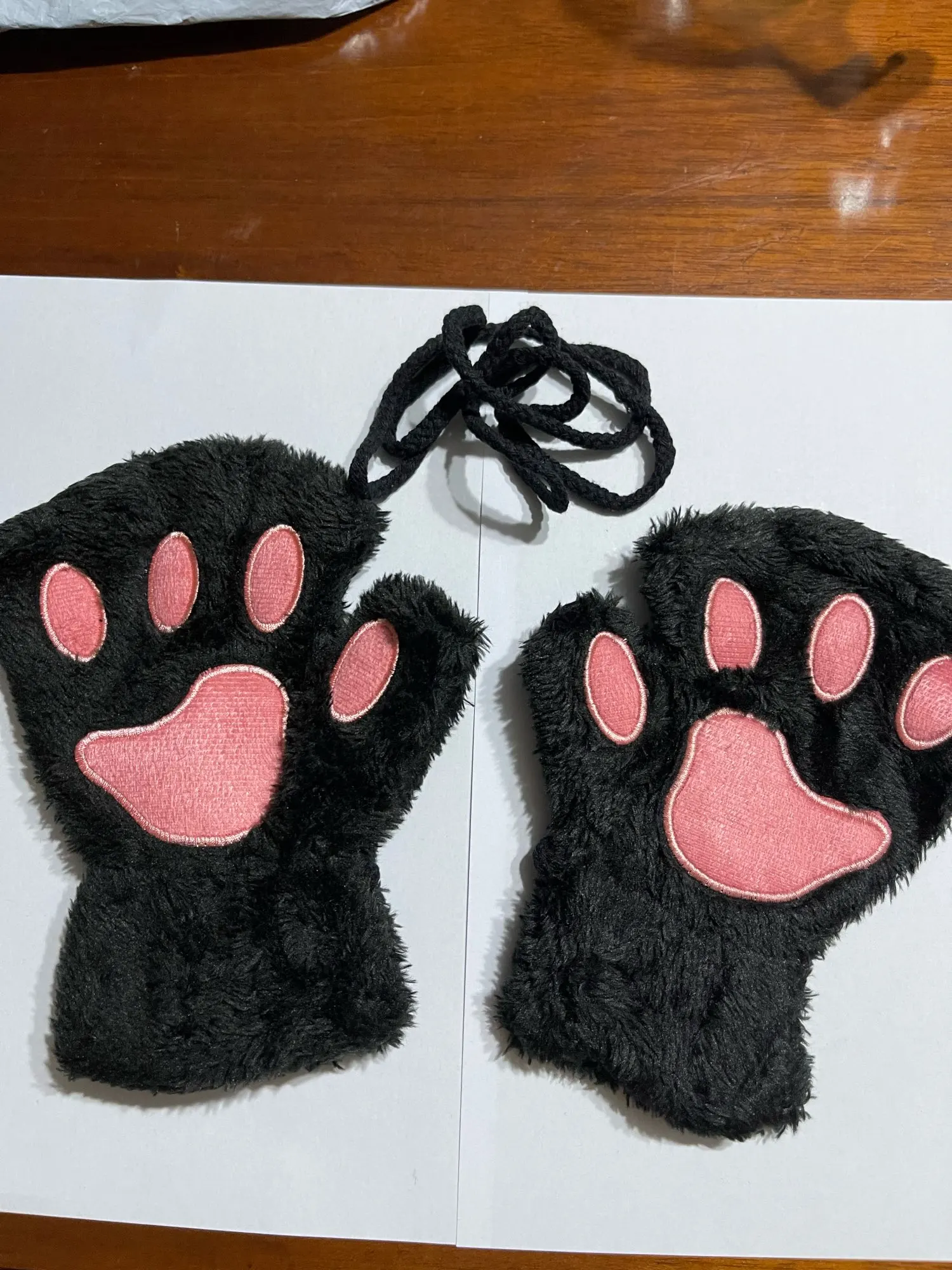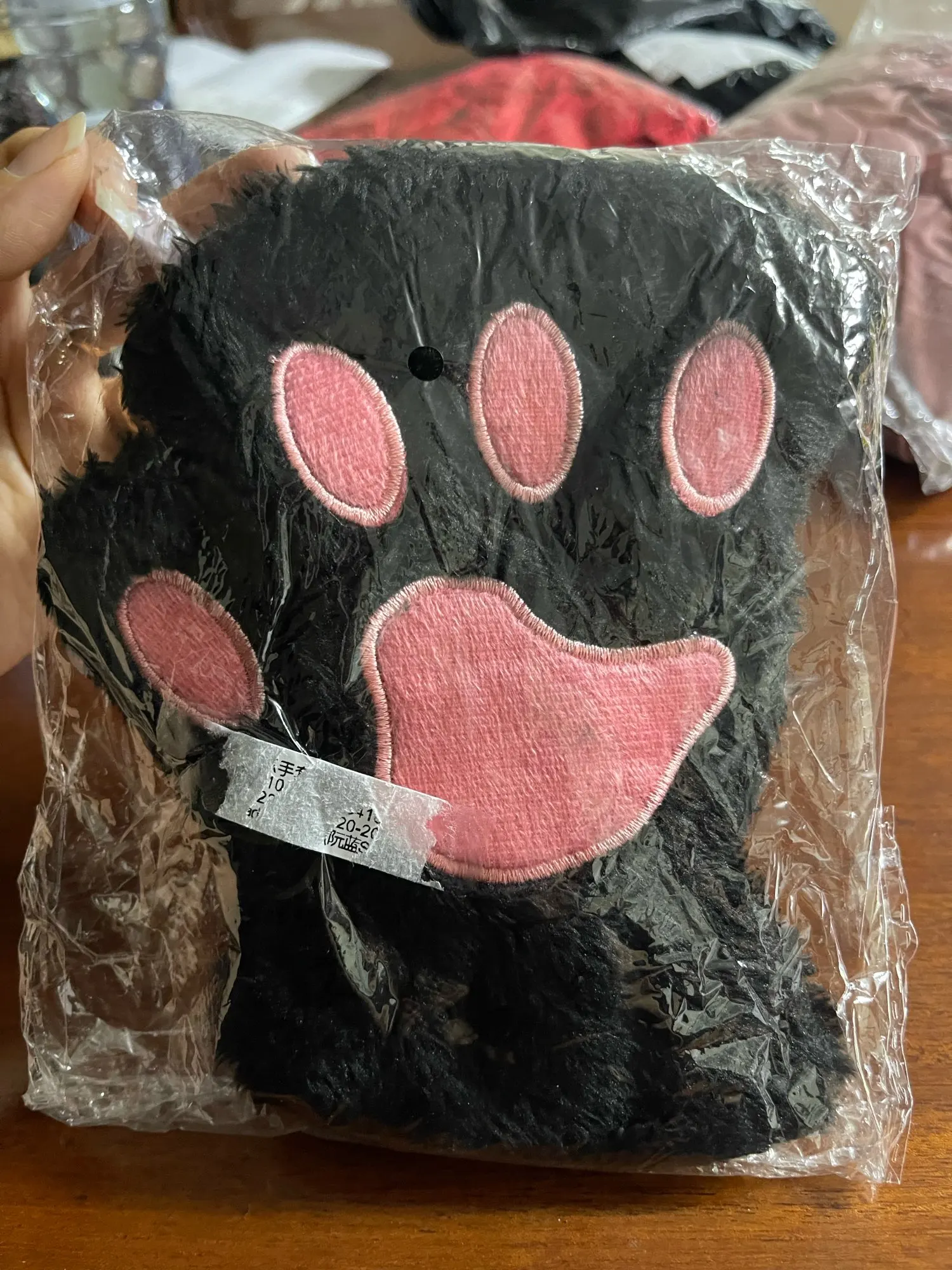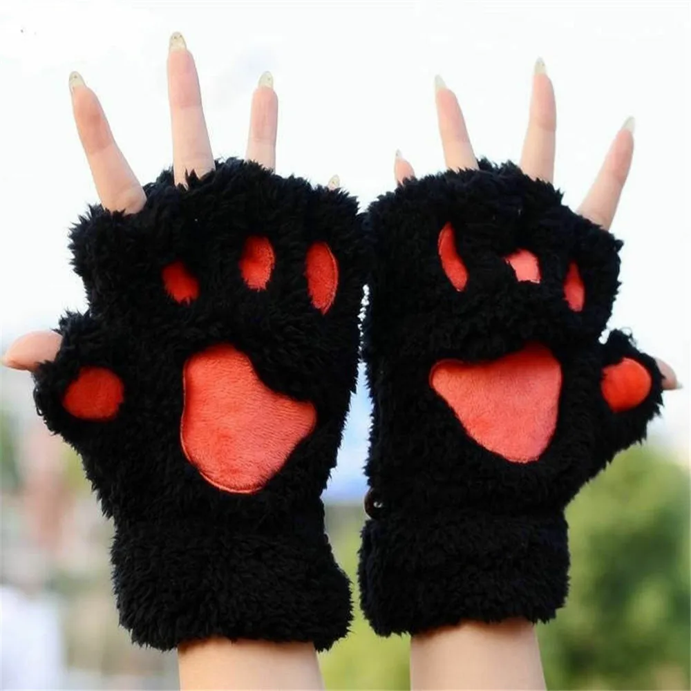 Зимняя рукавица на полпальца, женские милые плюшевые рукавицы с мультяшным рисунком, кошачья лапа с когтями, костюм, короткие перчатки