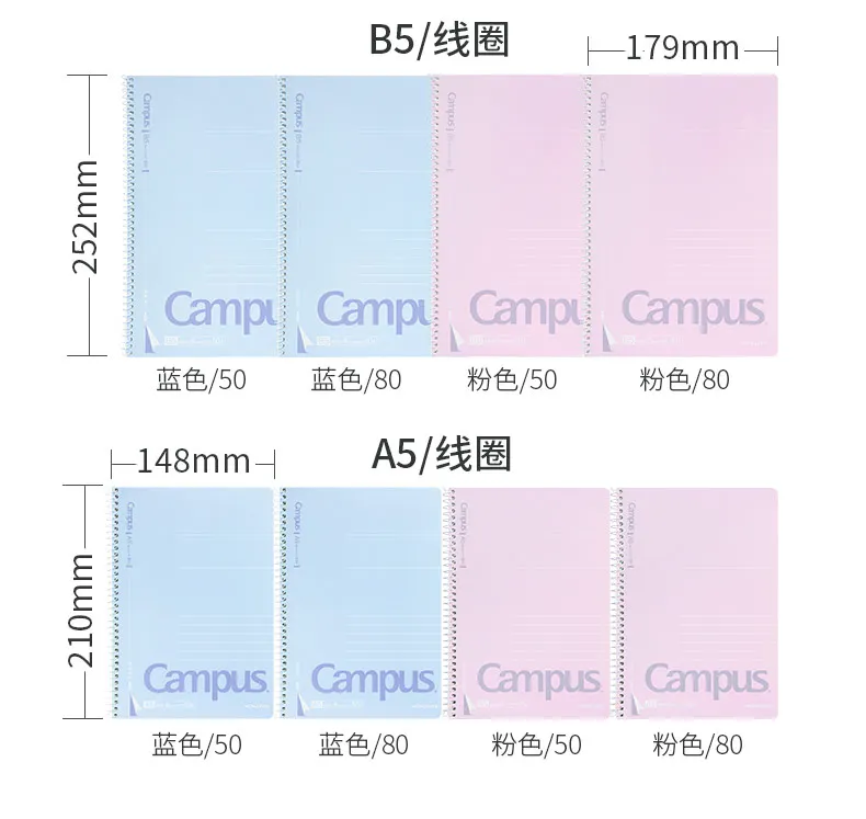 Набор спиральных блокнотов KOKUYO WCN-NA5, А5 В5, 3 шт.