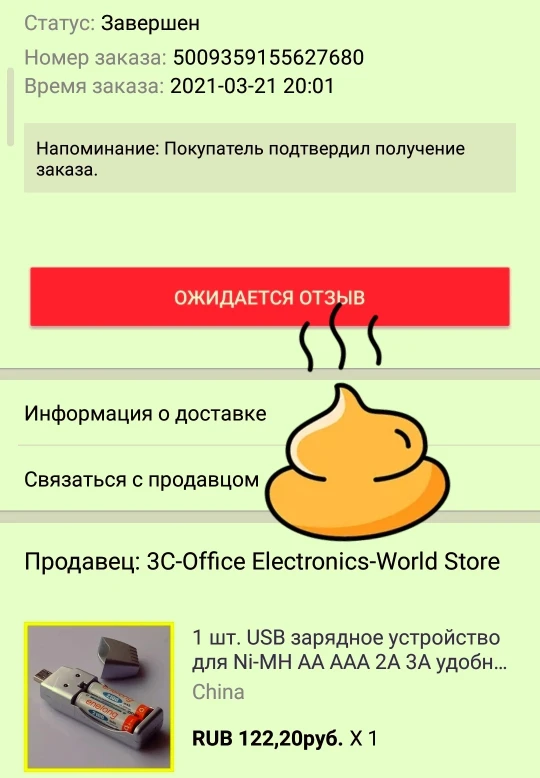Страна: RU Ships From: China Доставка: Cainiao Super Economy 05.03.2021