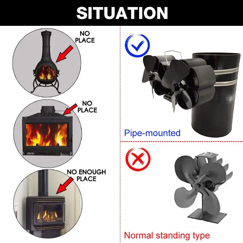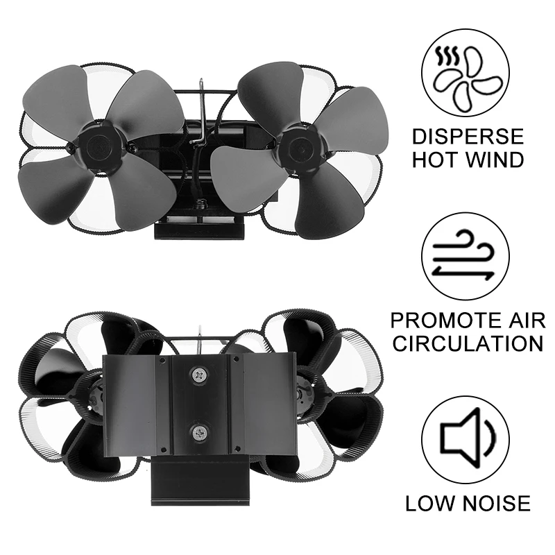 Формованная двойная головка, 8 лопастей, вентилятор для печи, работающий от тепловой энергии komin, деревянная горелка, экологически чистый, тихий вентилятор, домашнее эффективное распределение тепла