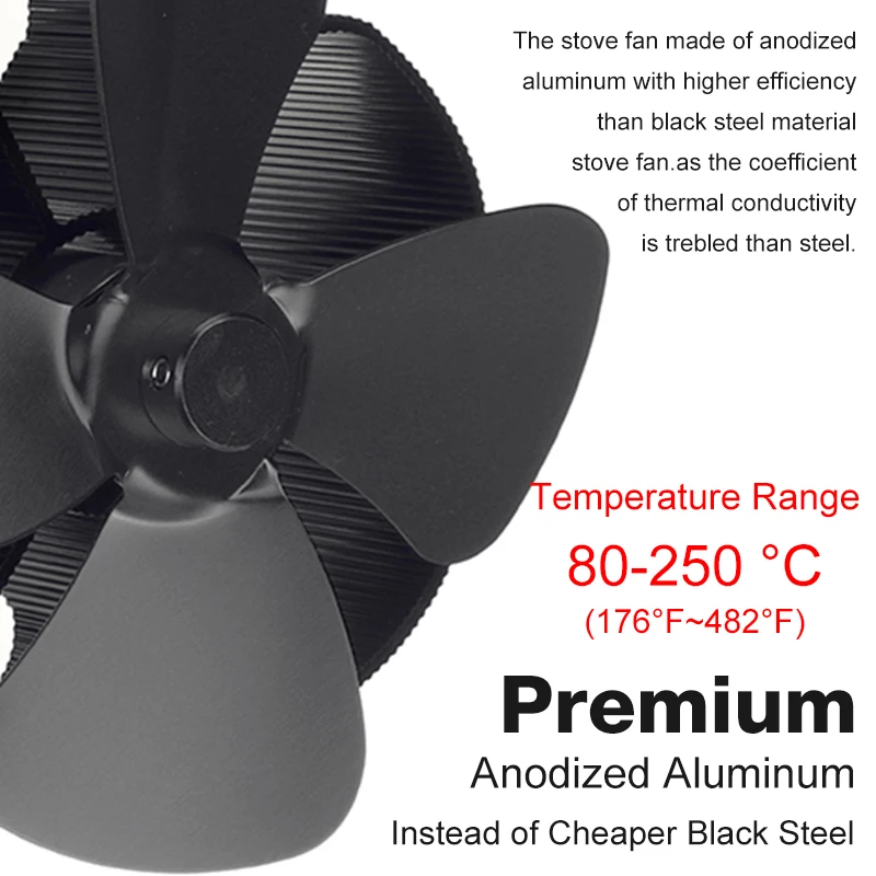 Особенности: -Этот вентилятор печки питается от преобразования тепла в энергию без использования каких-либо батарей или электричества. -Улучшенное теплое а ИК-циркуляция обеспечивает больший комфорт и снижает расход древесины у вашей плиты. -Диапазон рабочей температуры составляет около: 176 °F/80 °C ~ 482 °F/250 °C, чем выше температура, тем быстрее она начинает вращаться. Внимание: при использовании вентилятора плиты температура не должна превышать 345 °C. -Этот вентилятор печки бесшумный и тихий. Характеристики: Количество лезвий: 8 Начальная температура: 50 °C Рабочая температура R ange: 176 °F/80 °C ~ 482 °F/250 °C Материал: анодированный алюминий Цвет: черный/серый/Золотой/Серебряный/Бронзовый/розовый Посылка 1 вентилятор для печки 2x металлические кольца 1x руководство Полезные советы: 1. Тепловые вентиляторы печей не обеспечивают прямого повышения температуры, а только инструмент для ускорения теплопередачи дымохода. 2. Не требует обслуживания: просто периодически очищайте его и нанесите на вал лезвия немного легкого масла, чтобы он вращался плавно и бесшумно! 3. Не переносите основание варочной панели. Не размещайте плиту на незащищенной поверхности, когда она горячая. 4. Для перемещения или переноски веера всегда используйте выдвижную ручку при ношении перчаток. Держите ребенка подальше во время использования.