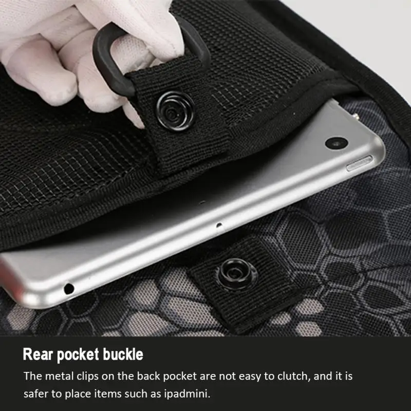 09. После того, как мешок с зажимом хочет пристегнуть заднюю часть сумки, не так просто прикрепить металлическую пряжку, размещение ipadmini и других предметов является более безопасным.