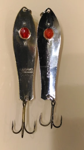 блесны отстой, две звезды поставил только за хорошие тройники, давно я не видел таких пластилиновых колец, разрывная( до полного разгибания колец) наверно около 2кг.Сами блесны по геометрии загиба и массе не имеют ничего общего с kuusamo кроме пластиковой бусины, на этом сходство заканчивается. однозначно мусор, но тройники хорошие, но для этих блесен, очень тяжёлые, однозначно менять.