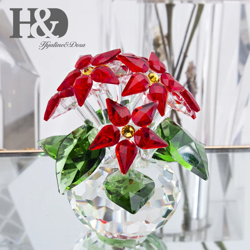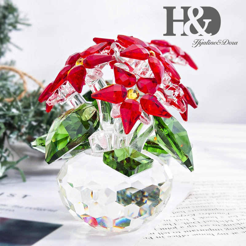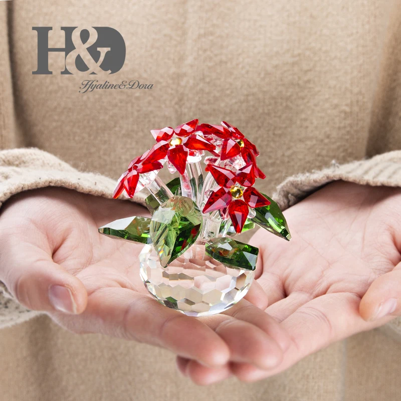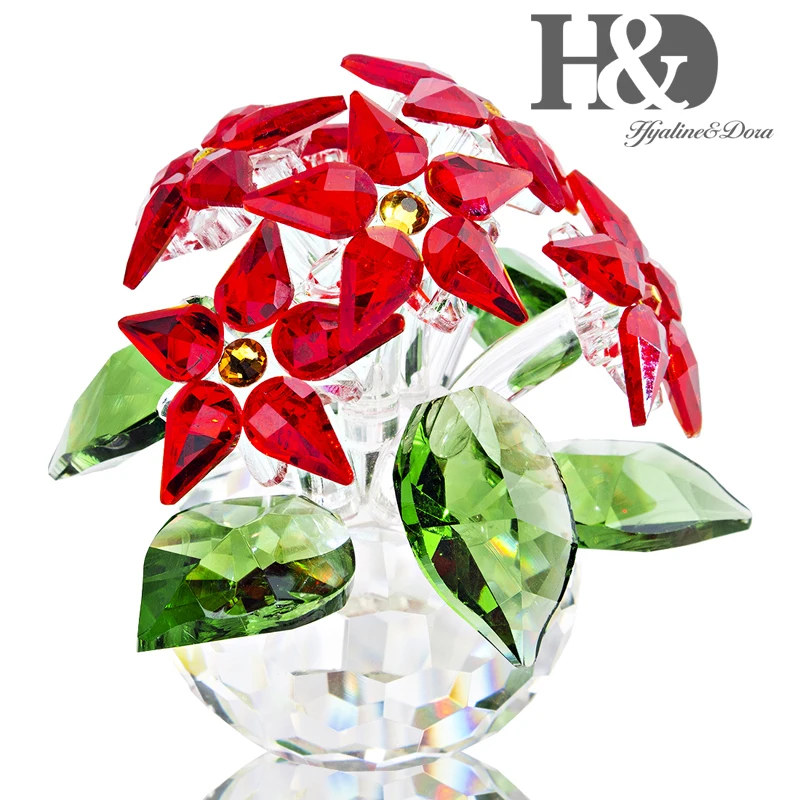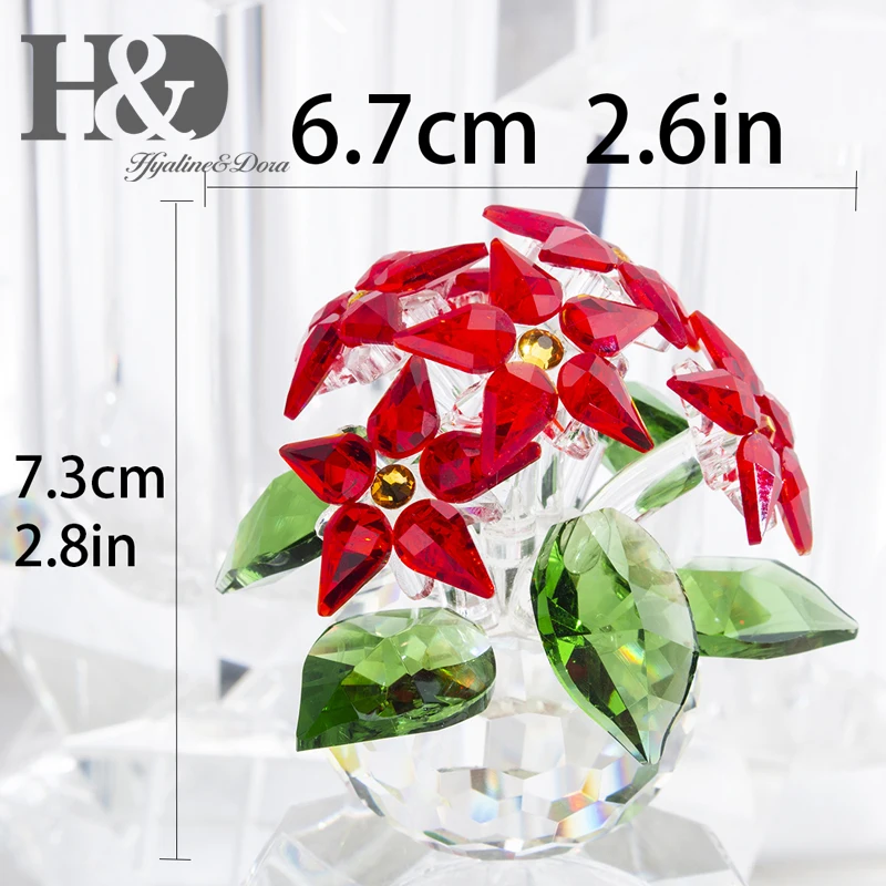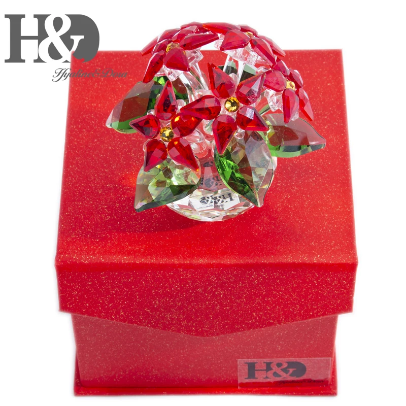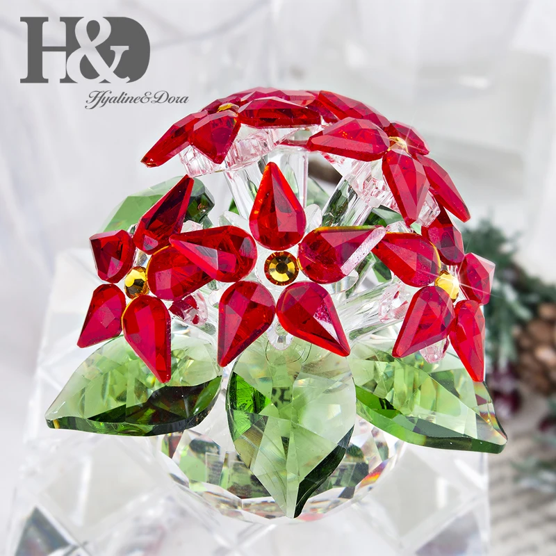 H & D Кристалл Poinsettia большой Праздничный Орнамент домашний офисный стол пресс-папье свадебный Рождественский подарок цветок коллекционный стеклянные фигурки с подарочной коробкой
