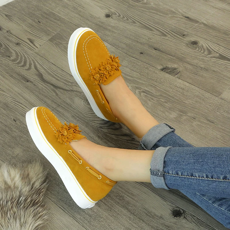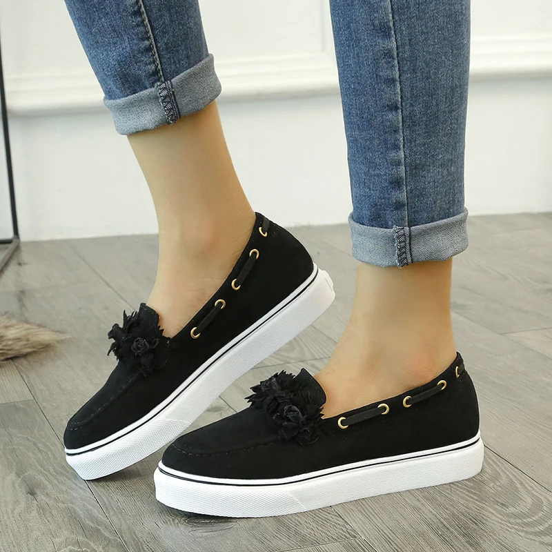 Большие размеры 35-43; Женские лоферы; Обувь на платформе; Повседневная обувь из искусственной замши без застежки на плоской подошве; Водонепроницаемые Мокасины с вышитыми цветами; zapatos mujer; 78L85