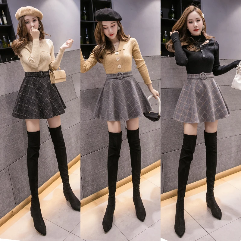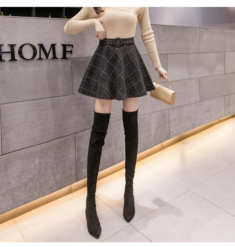 Осенняя шерстяная мини-юбка в клетку, женская зимняя, трапециевидная, в стиле преппи, со складками, плотная юбка-шорты