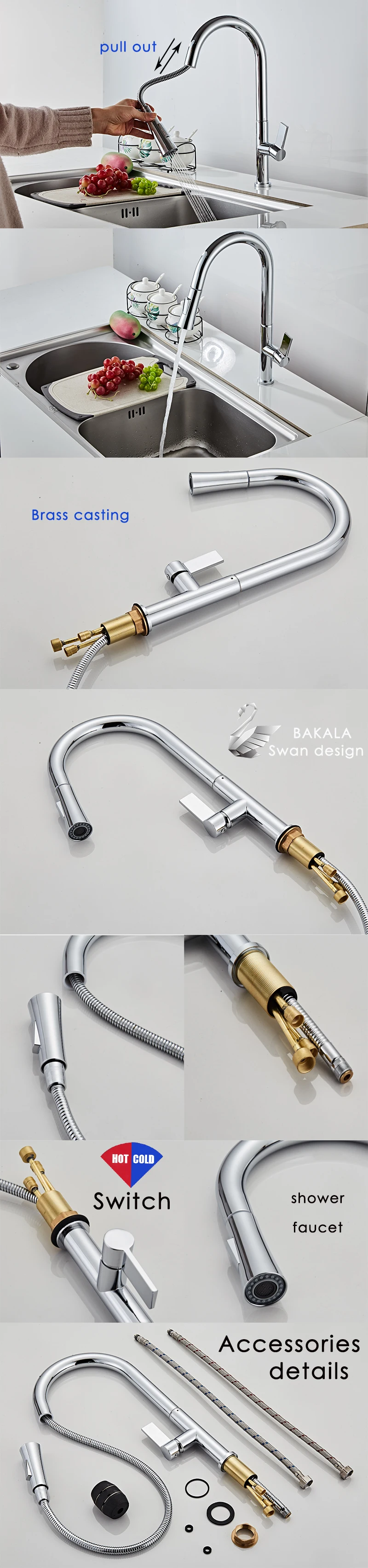 BECOLA Кухня кран 2 Функция носик Кухня смеситель кран для горячей и холодной воды раковина кран тянуть вниз водопроводные краны 8336