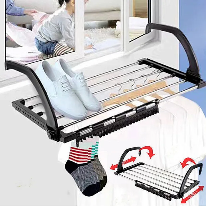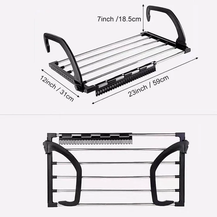 Складные подвесные стеллажи для одежды из нержавеющей стали с зажимами для балкона подоконника NIN668