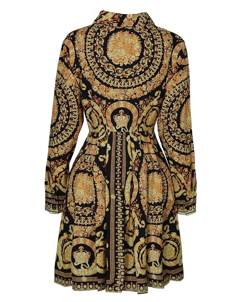 Женское винтажное платье-рубашка с принтом, модное дамское свободное платье-трапеция с длинным рукавом и отложным воротником, праздничное платье для весны и осени