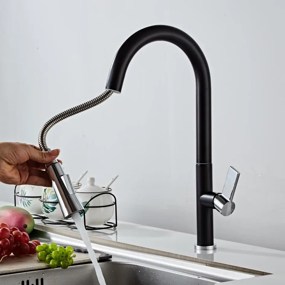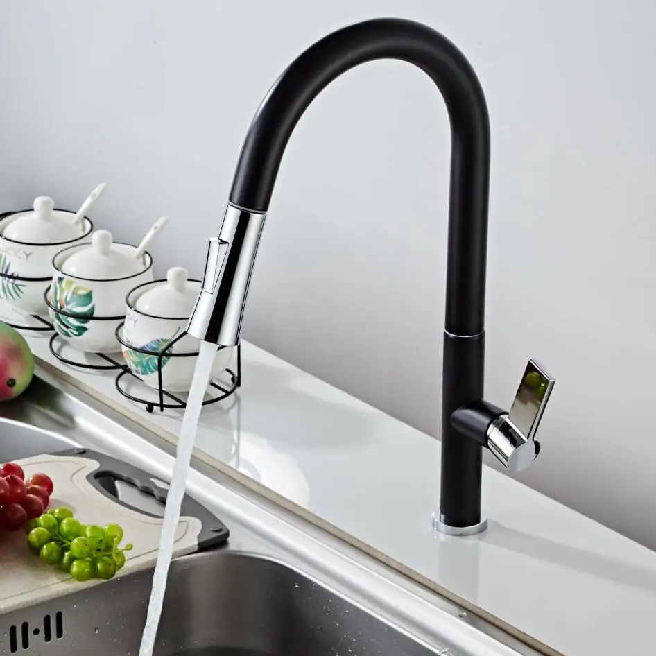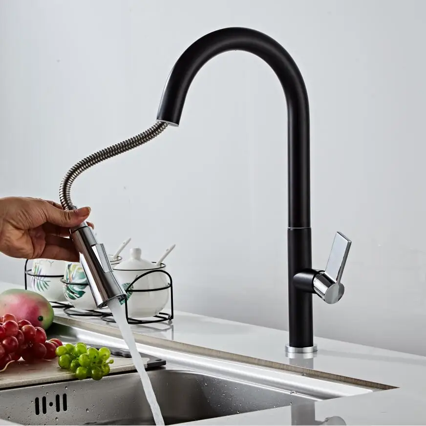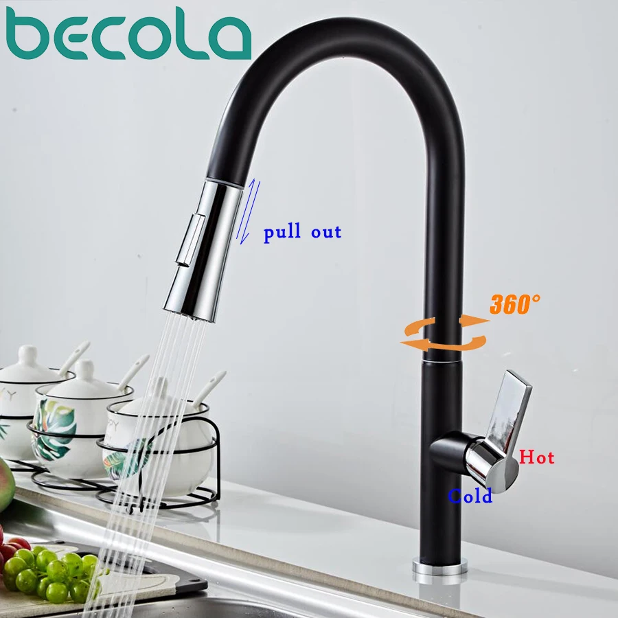 Новый черный выдвижной кухонный смеситель BECOLA, латунный Роскошный кухонный смеситель для раковины, смесители для кухни, выдвижной кухонный кран 8336