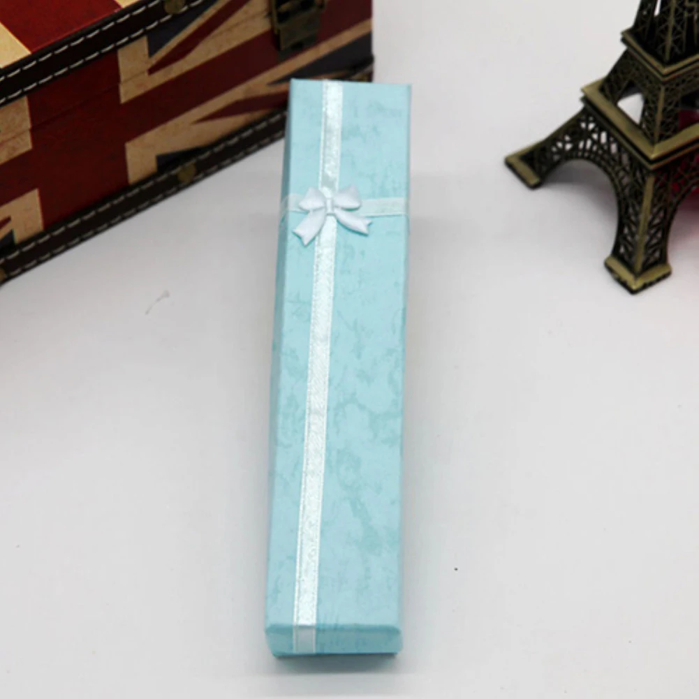 Особенности: Особый дизайн с бантом, выглядит мило и модно. Подходит для хранения ожерелья, браслета, ювелирных изделий. Подходит для упаковки подарков. Тип: Подарочная коробка для украшений Материал: картон Количество: 1 шт. Особенности: красивый, полезный, с крышкой, Декор бантом Размер: 4,5x21x2 см/1,77x8,27x0,79 дюйма (прибл.) Примечания: Из-за разницы в освещении и настройках экрана цвет изделия может немного отличаться от изображения. Возможны незначительные различия в размерах из-за различий в измерениях вручную. Посылка входит: 1 подарочная коробка для украшений