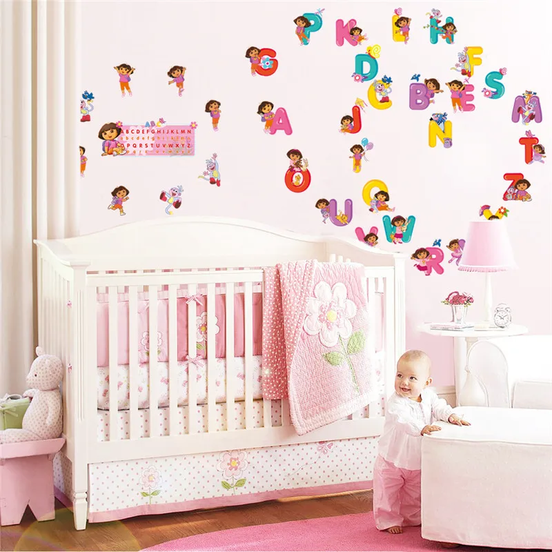 Мультфильм Дора декор для детской спальни алфавит наклейки на стену для детей клей Фотообои
