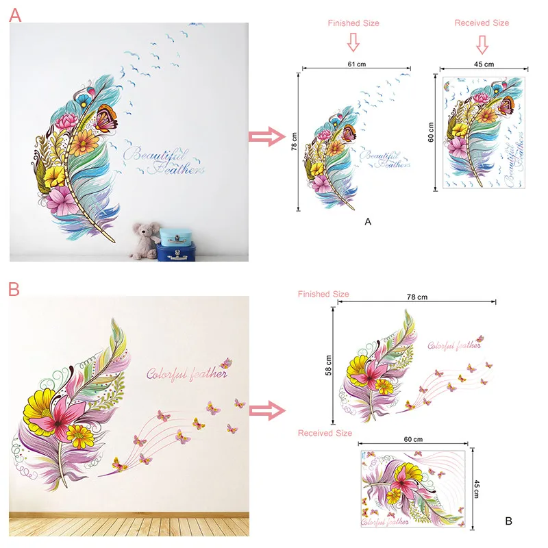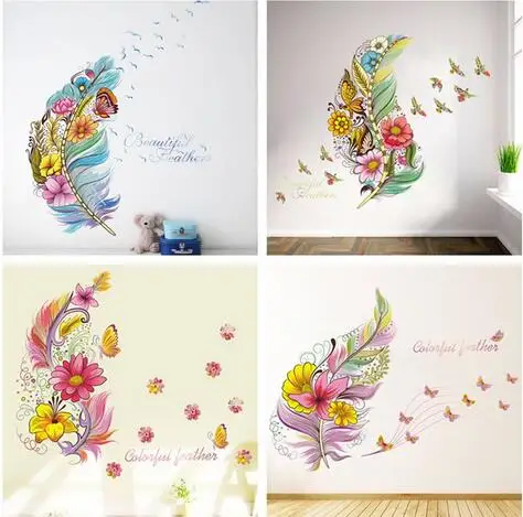 Перья цветок wall art наклейки на ногти, роспись комнаты, магазина ...