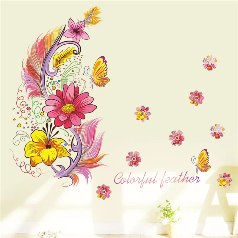 Цветок бабочка перо Наклейка на стену для дома гостиной красочный ф...