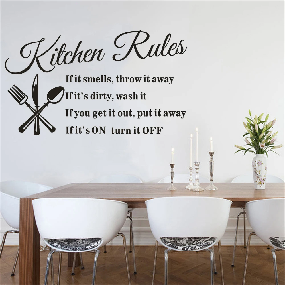 Цитаты кухня правила текст Ресторан Настенные Стикеры для домашнего шкафа настенные росписи DIY домашний декор для гостиной Adesivo де Parede