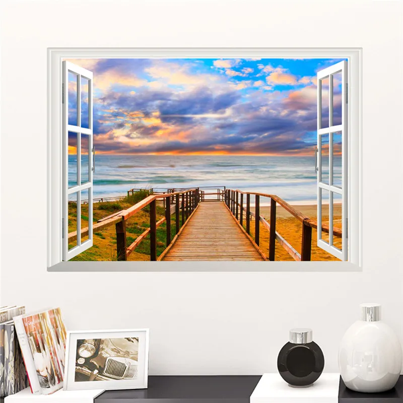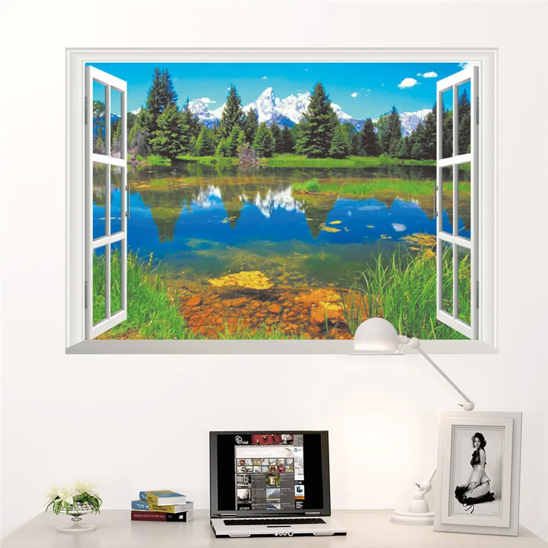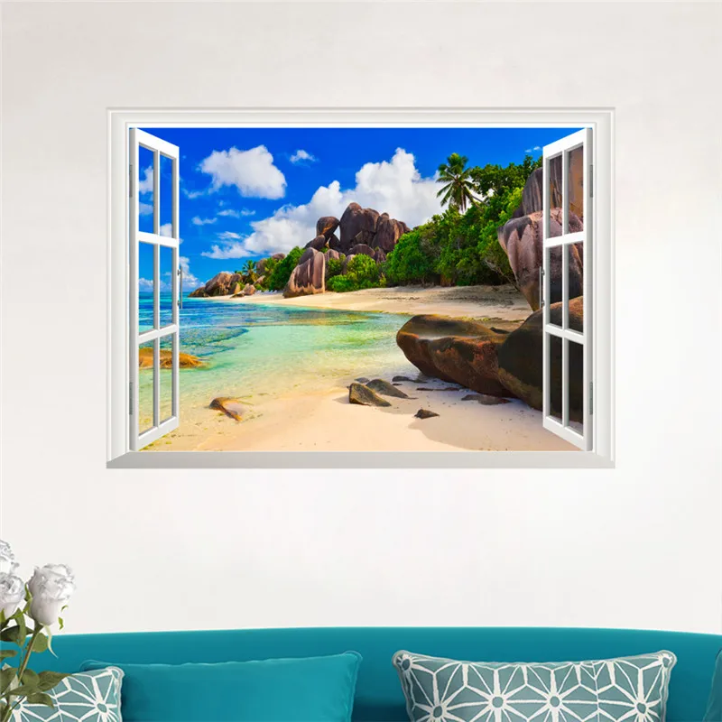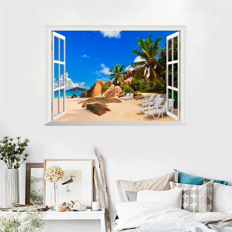 3d яркие наклейки на стену в виде окна леса озера пляжа, наклейки на стену для спальни, гостиной, фотообои, горячий постер, домашний декор, наклейка