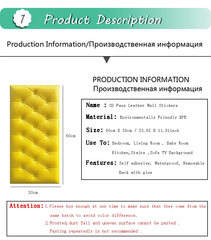 ① Пожалуйста, покупайте достаточно за один раз, чтобы убедиться, что они поставляются из одной партии, чтобы избежать разницы в цвете.② Очистка стены перед наклеиванием. Матовое покрытие, пыль, не гладкая, неровная, шероховатая и влажная поверхность не приклеивается. Повторная наклеивание не рекомендуется. Если вы не уверены, можно ли его наклеить, вы можете проконсультироваться со службой поддержки клиентов перед размещением заказа.