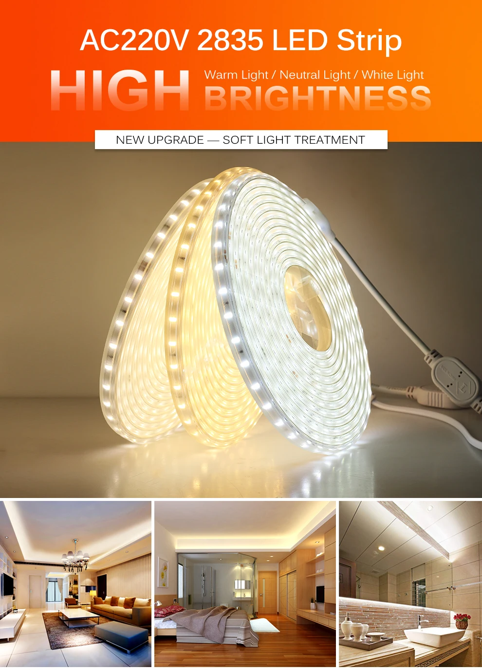 Высокая яркость, 220 В, 120 светодиодов, sm, мягкий свет, не ослепляющий, гибкий светодиодный светильник, безопасная Водонепроницаемая светодиодный ная лента для использования на улице