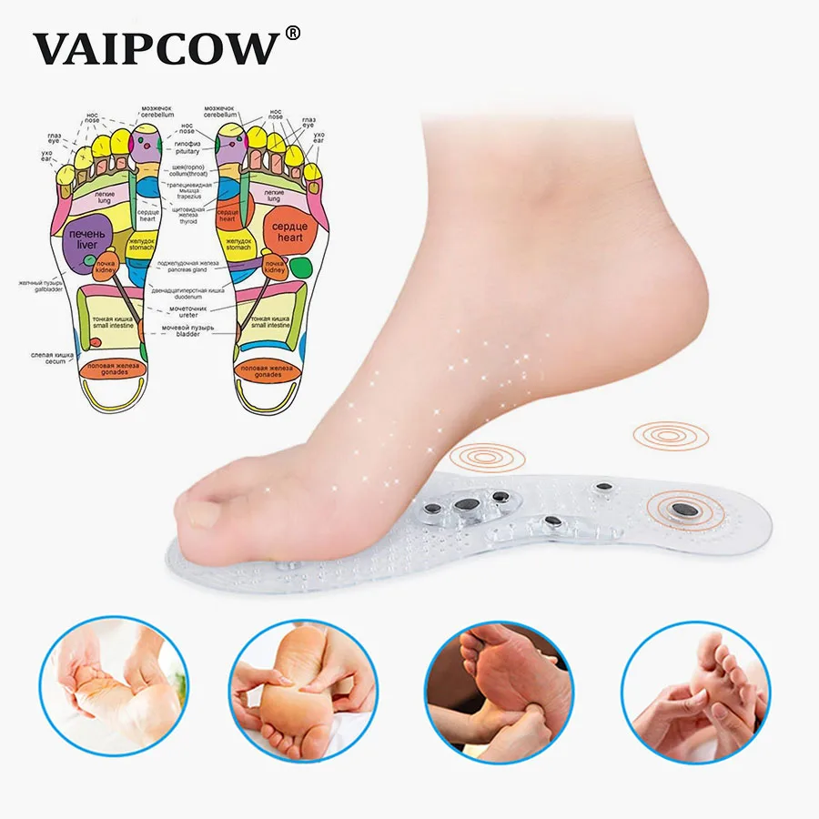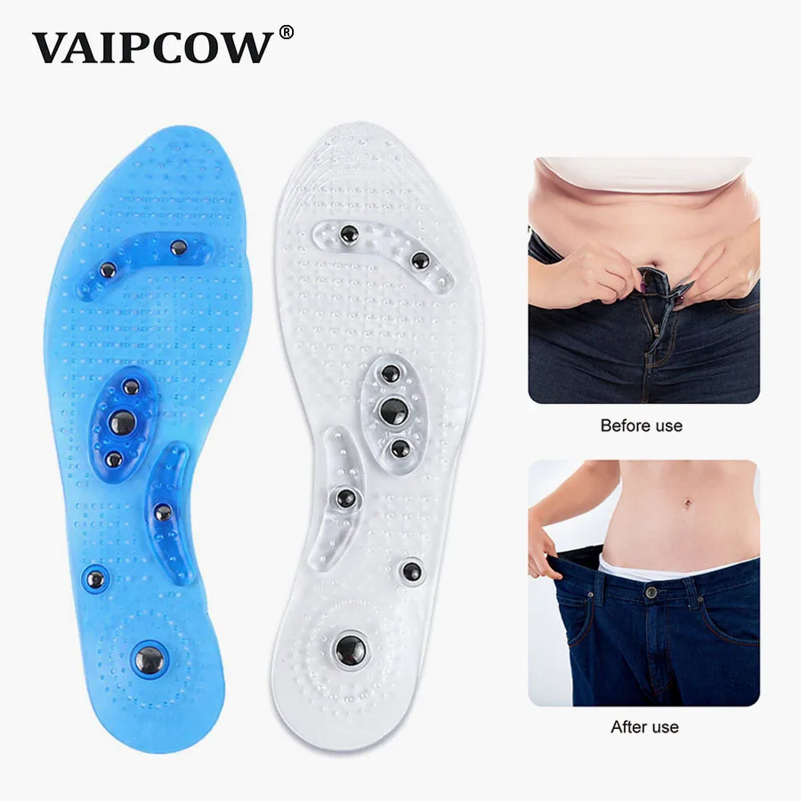 Магнитные массажные стельки унисекс для акупрессуры ног, терапевтические стельки для похудения, прозрачные, синие, черные