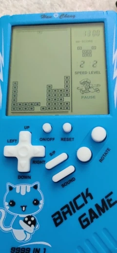 Инструкции нет, поэтому разбирался методом тыка. Работает от аккумуляторов АА, значит батарейки может высаживать почти в 0. Скорость можно выбирать вручную, кроме тетриса есть еще несколько игр, но мне они не кажутся интересными: что-то вроде гонок, еще игра где надо перемещать платформу, от которой отскакивает "шарик". Может еще какие есть. Что понравилось: большой экран Что не понравилось: кнопки, похоже, сделаны на одном куске резины и когда нажимаешь одни, вокруг шатаются другие. На удобство не влияет.