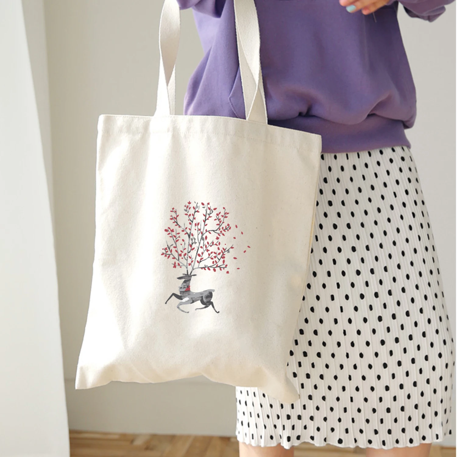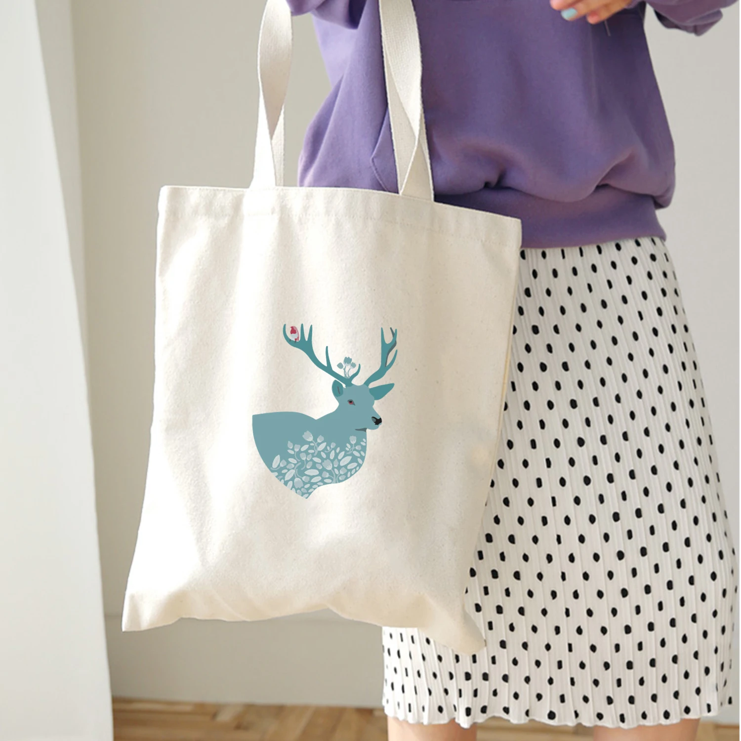 Креативный милый Повседневный экологический холст с принтом оленя, сумка, кошелек, сумка через плечо, многоразовая сумка для покупок, складная сумка из ткани