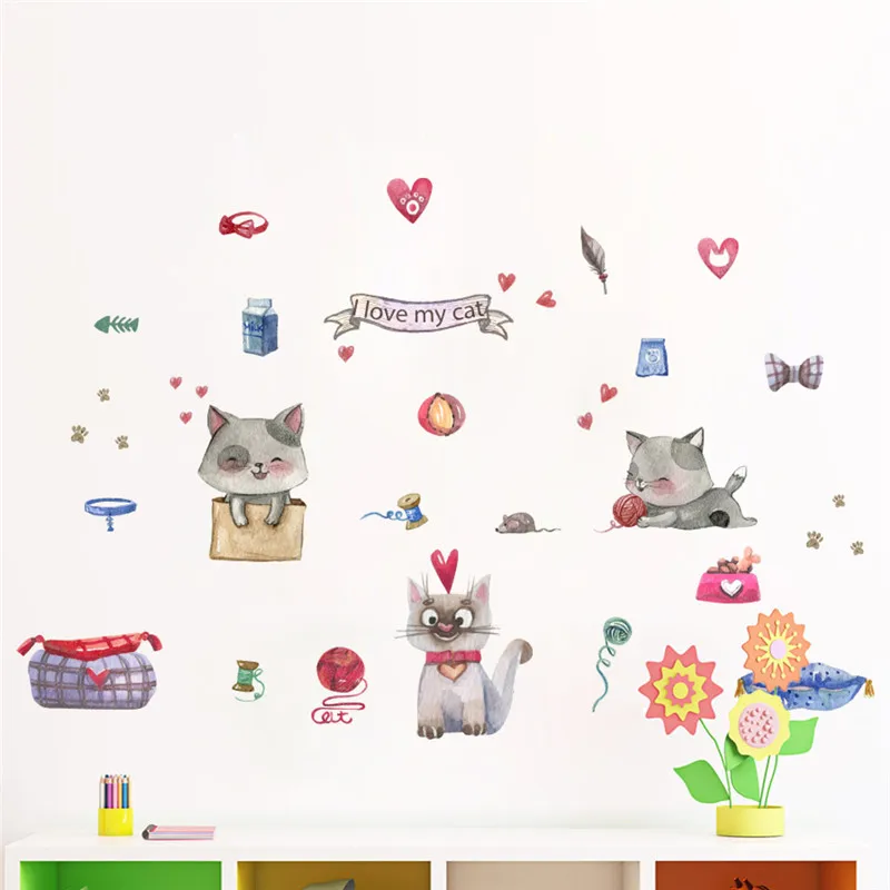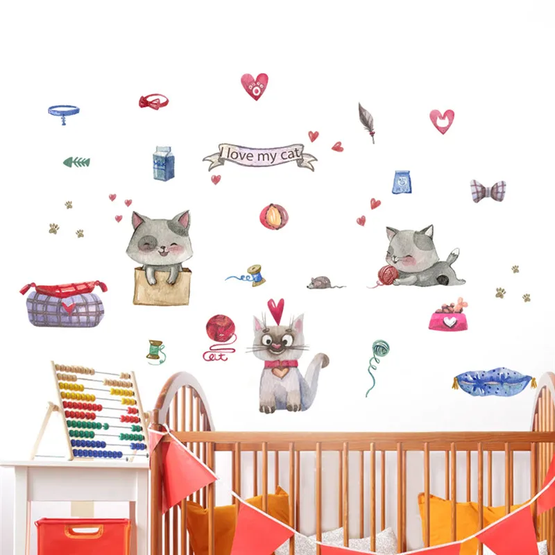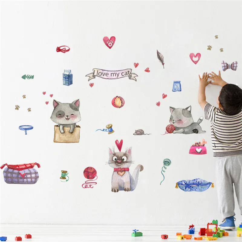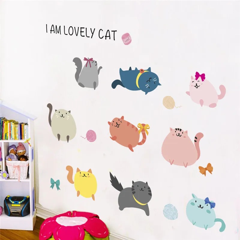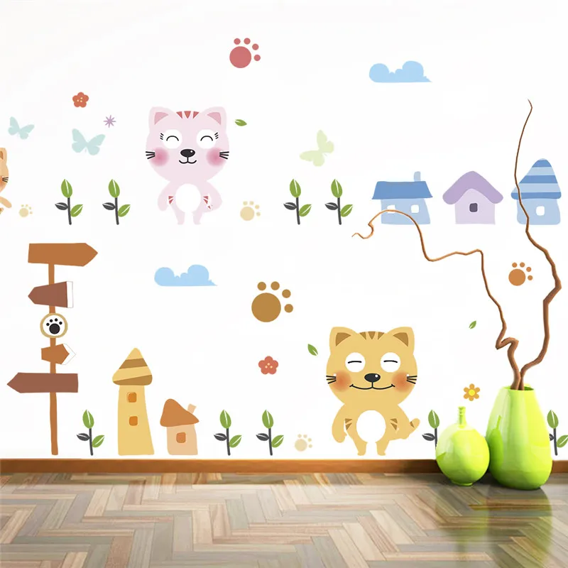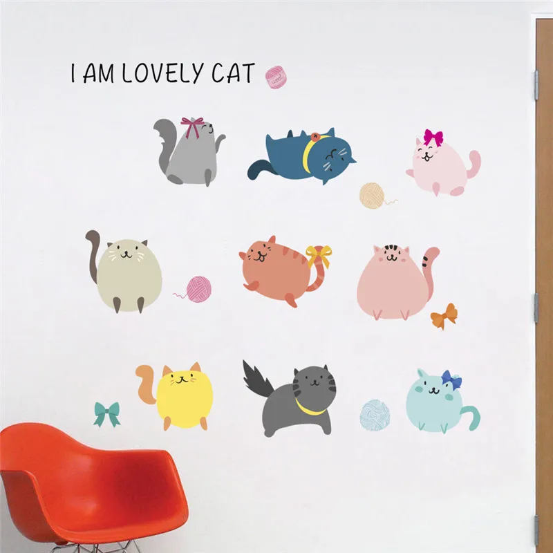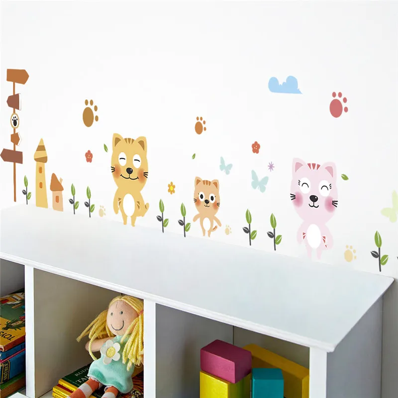 Настенные стикеры со смайлами, котами и лапами для детской комнаты, спальни, гостиной, украшение, искусство росписи